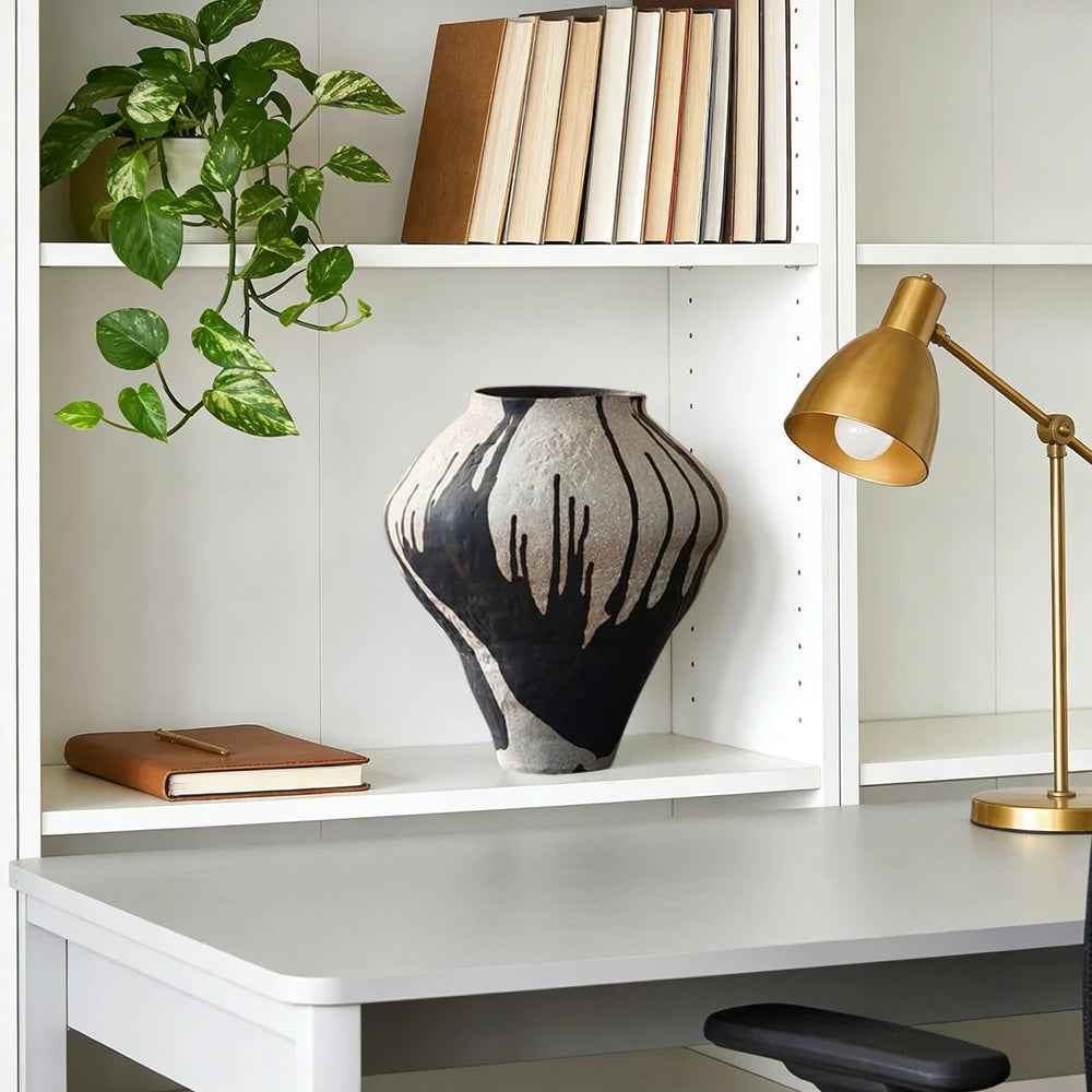 LIVARA Ceramic Vase Ornament Faded Rose Motif Artistic Home Display Matte Ceramic Handcrafted Textured Finish