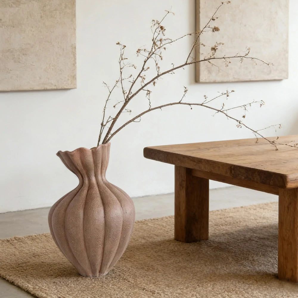 LIVARA Ceramic Vase Ornament 15cm Outer Opening Decorative Art Object Matte Ceramic Handcrafted Stone-Texture Design - Brown