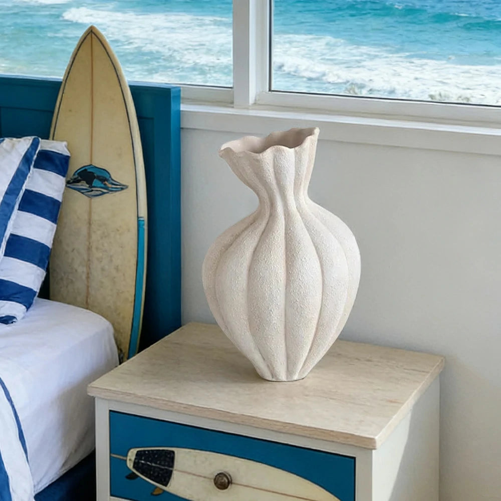 LIVARA Ceramic Vase Ornament 15cm Outer Diameter Artistic Home Display Matte Ceramic Handcrafted Stone-Texture Finish - White