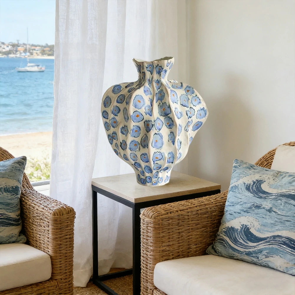 LIVARA Ceramic Vase Ornament Qing Shadow Layered Rhythm Theme Artistic Home Display Matte Ceramic Handcrafted Stone-Texture Design