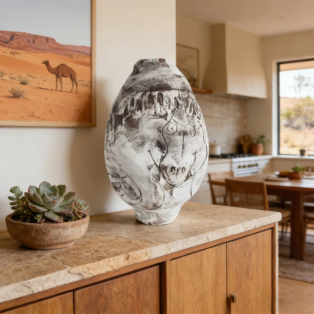 LIVARA Ceramic Vase Ornament Painted Horse Motif Decorative Art Object Matte Ceramic Handcrafted Textured Finish