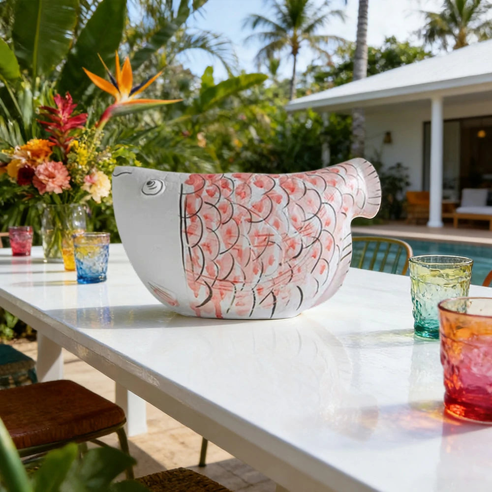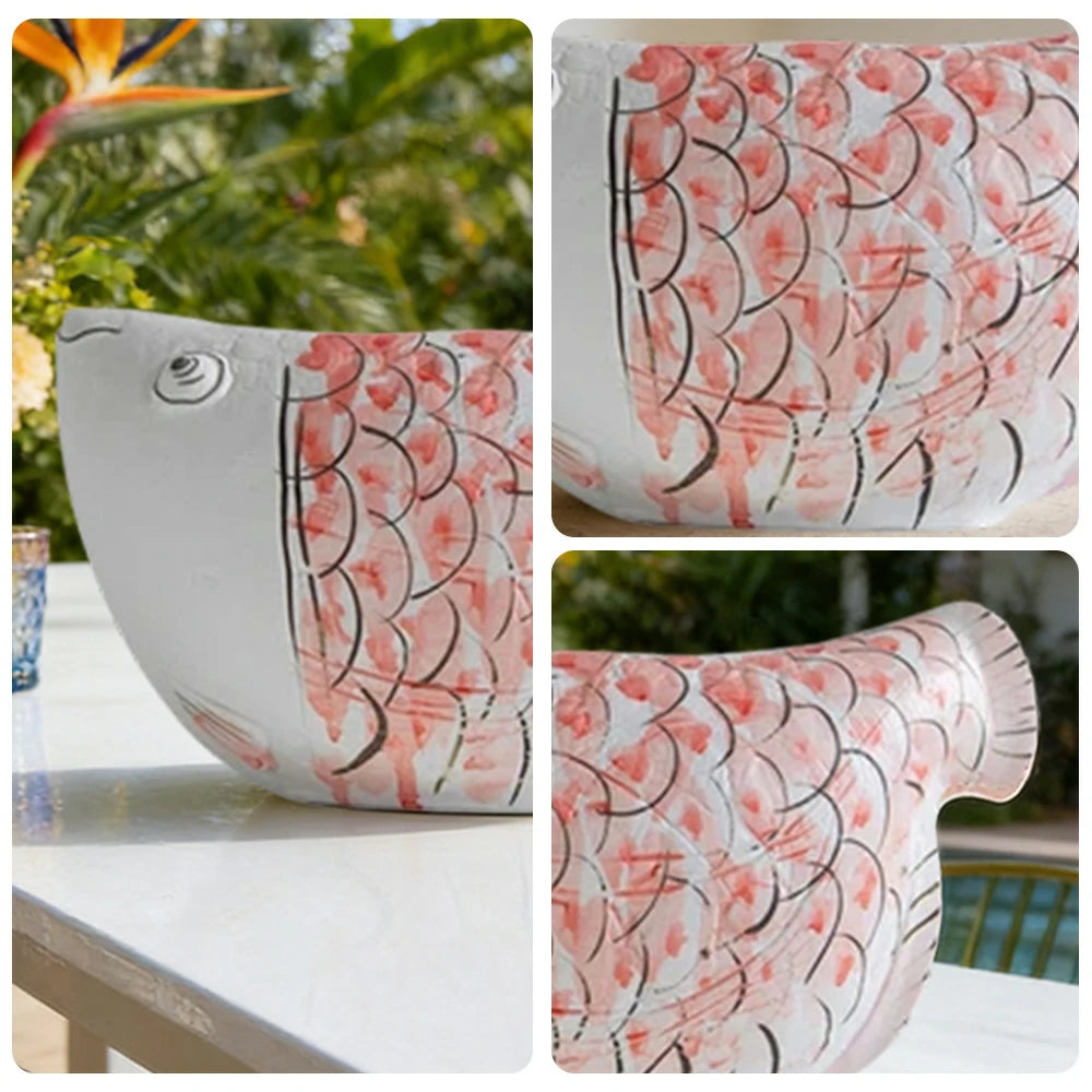 LIVARA Ceramic Vase Ornament Blue-and-White Porcelain with Crimson Dragonfish Motif Artistic Home Display Matte Ceramic Handcrafted Stone-Texture Design
