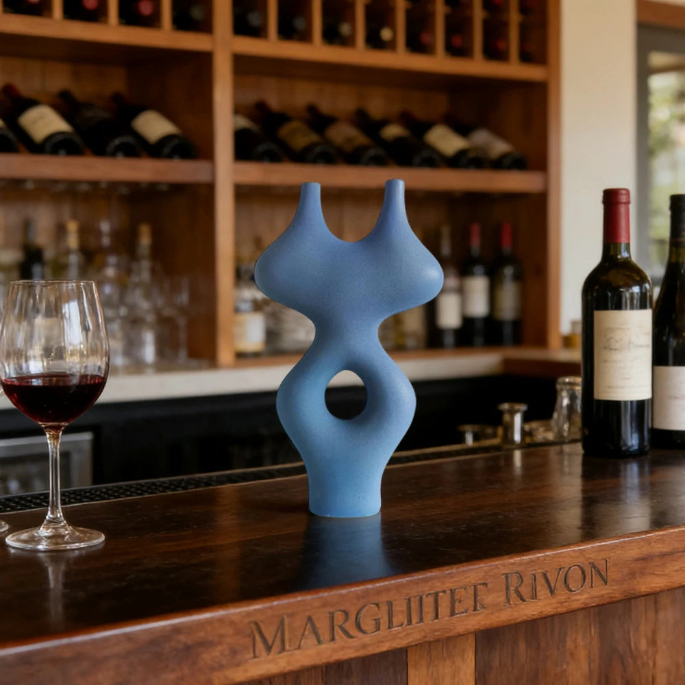 LIVARA Ceramic Vase Ornament Multi-Space Styling Artistic Home Display Matte Ceramic Handcrafted Stone-Texture Design - Blue