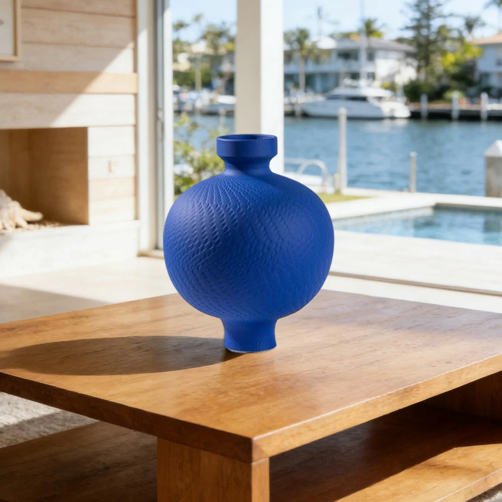 LIVARA Ceramic Vase Ornament Klein Blue Visual Accent Artistic Home Display Matte Ceramic Stone-Texture Finish