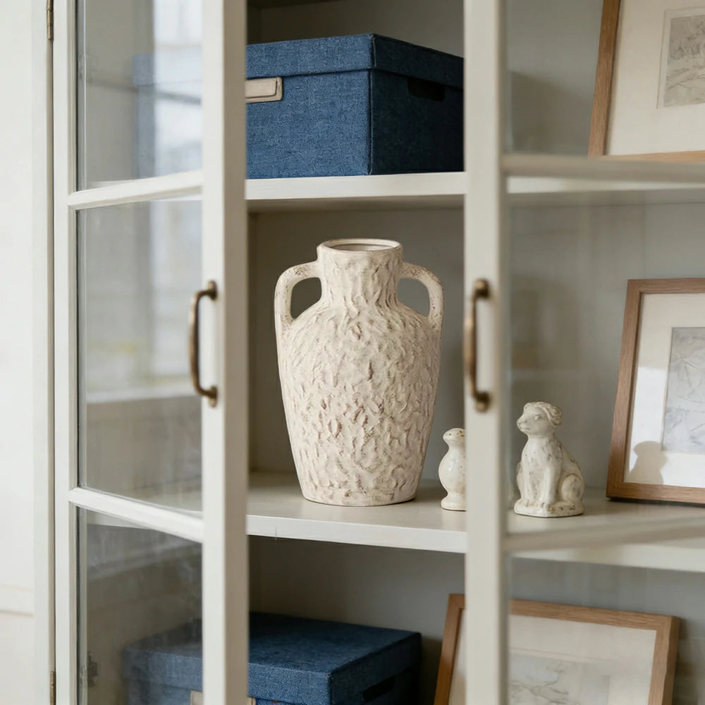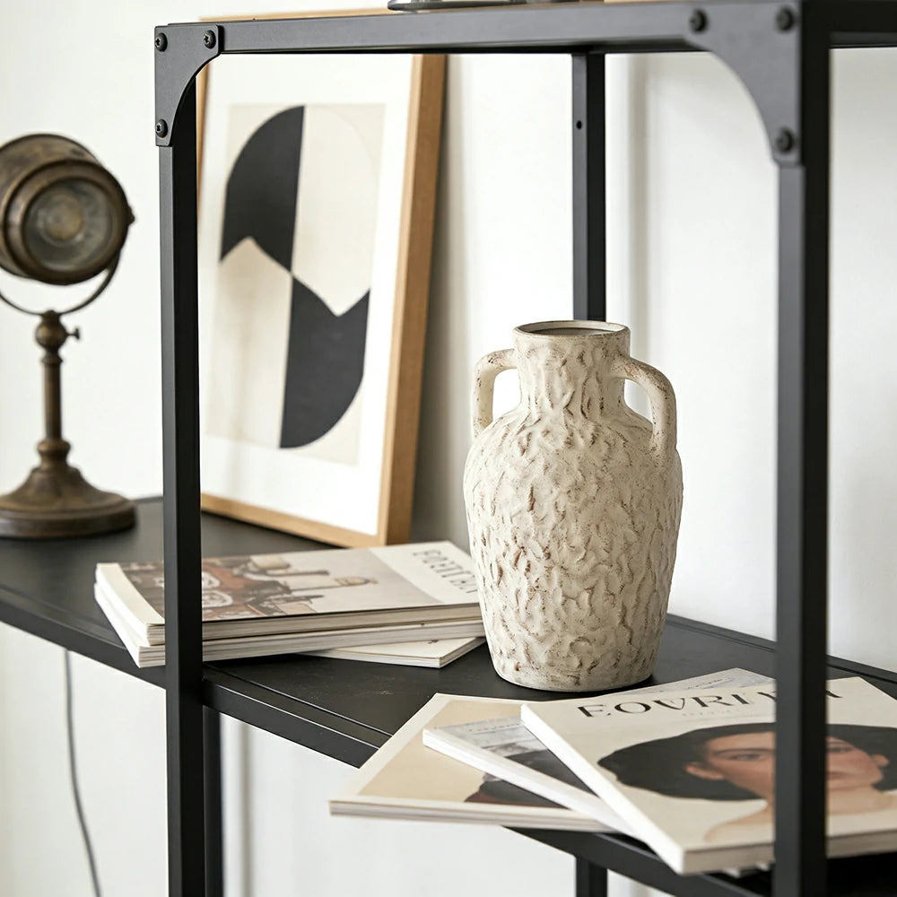 LIVARA Ceramic Vase Ornament Flow-Textured Double-Handle Vessel Artistic Home Display Matte Ceramic Natural Pattern Finish