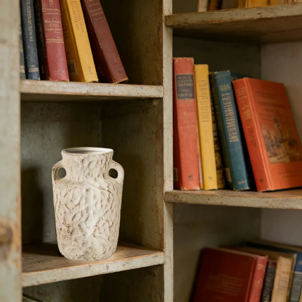 LIVARA Ceramic Vase Ornament Sculpted Double-Handle Form with Flowing Texture Decorative Art Vessel Matte Ceramic