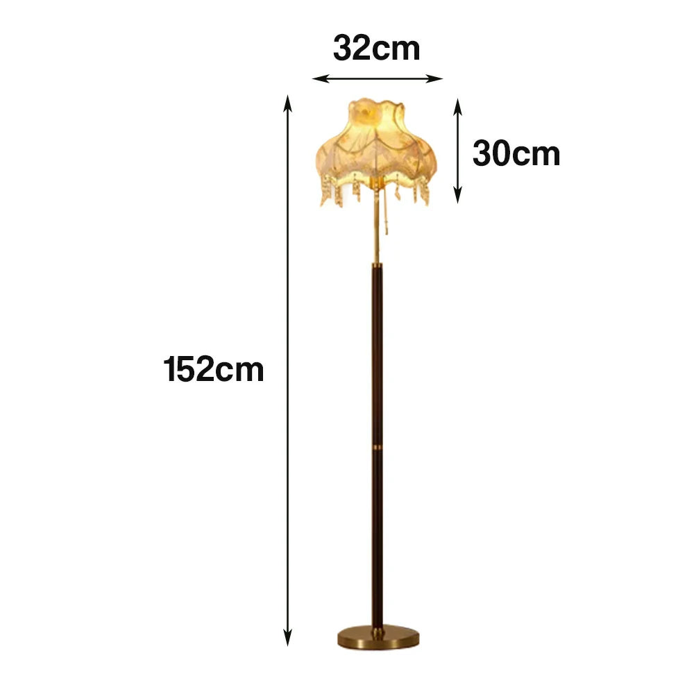 LIVARA Floor Lamp Soft Eye-Care Light Fabric Shade Brass Frame Walnut-Tone Base Versatile Home Decor