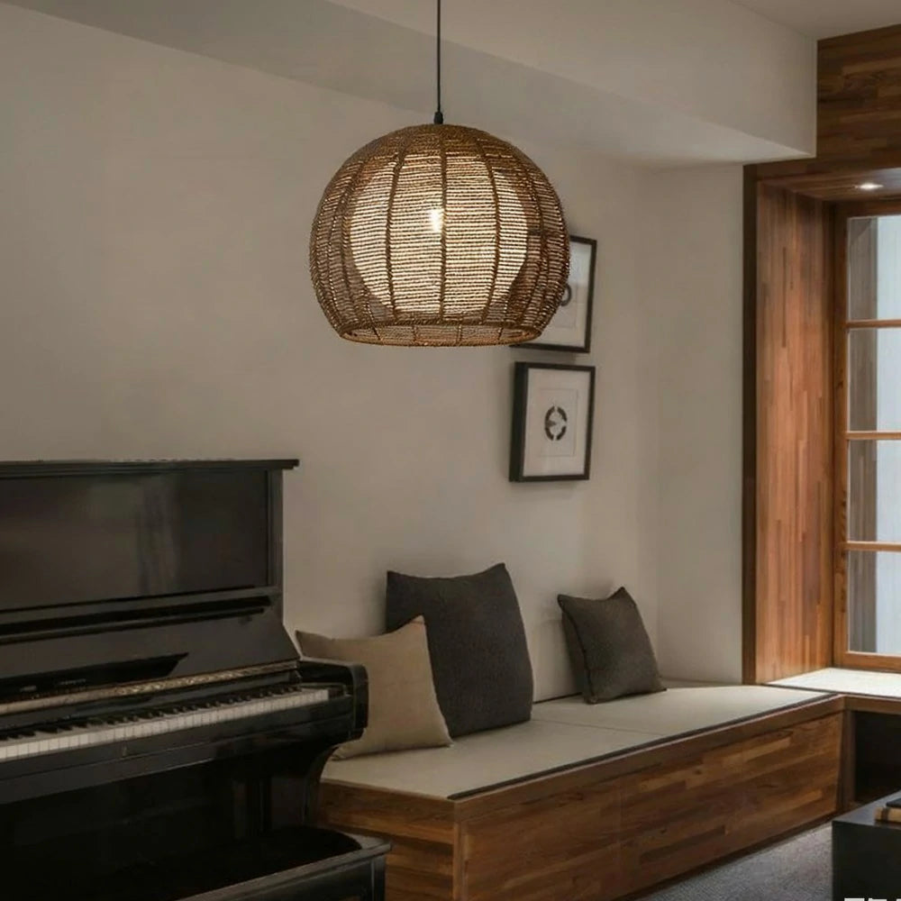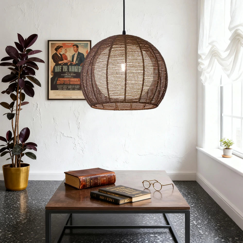 LIVARA 30/36/50cm Hemp Rope Pendant Light, Handcrafted Round Lampshade with E27 Bulb Included Creative Woven Desig - Coffee