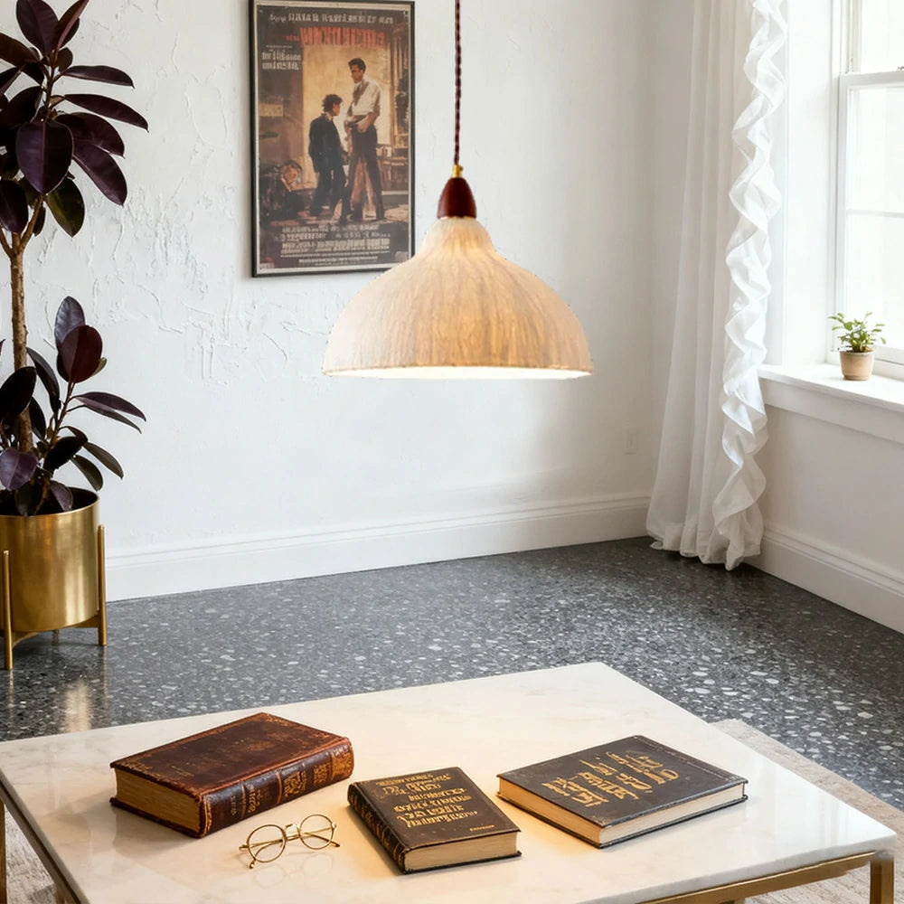 LIVARA 25/35cm Handmade Rice Paper Pendant Light, Natural Wood Holder with E27 LED Bulb Included, Eco-Friendly Japanese Wabi-Sabi Style Ceiling Lamp - Beige