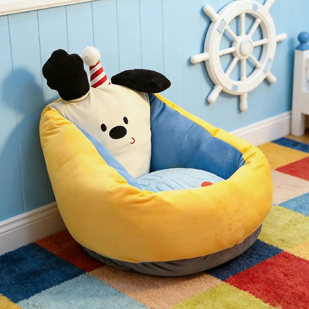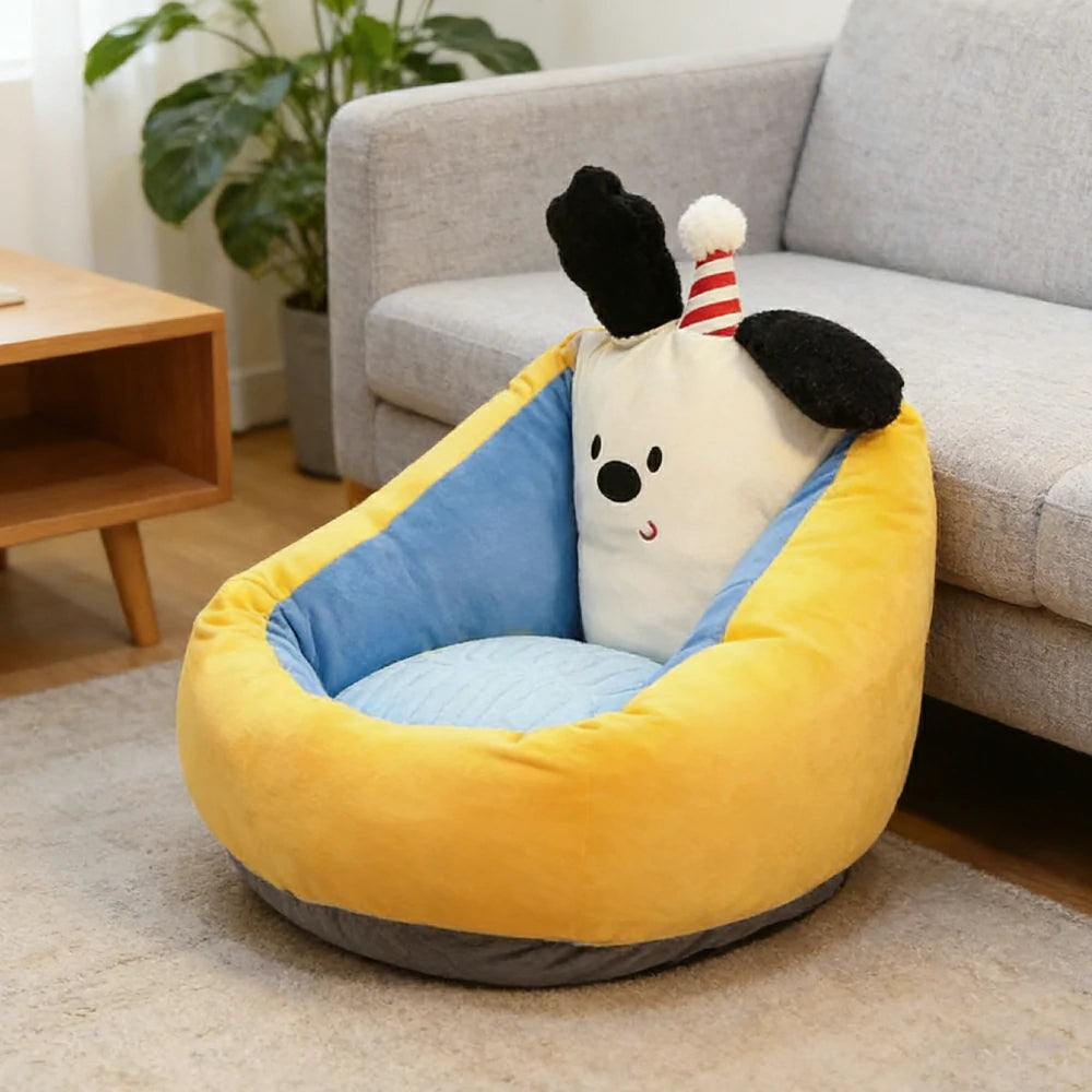 LIVARA 50/60cm Floor Seat Cushion, Wraparound Support Design, Plush Filled Core, Yellow Candy Dog Pattern, Non-Slip Base