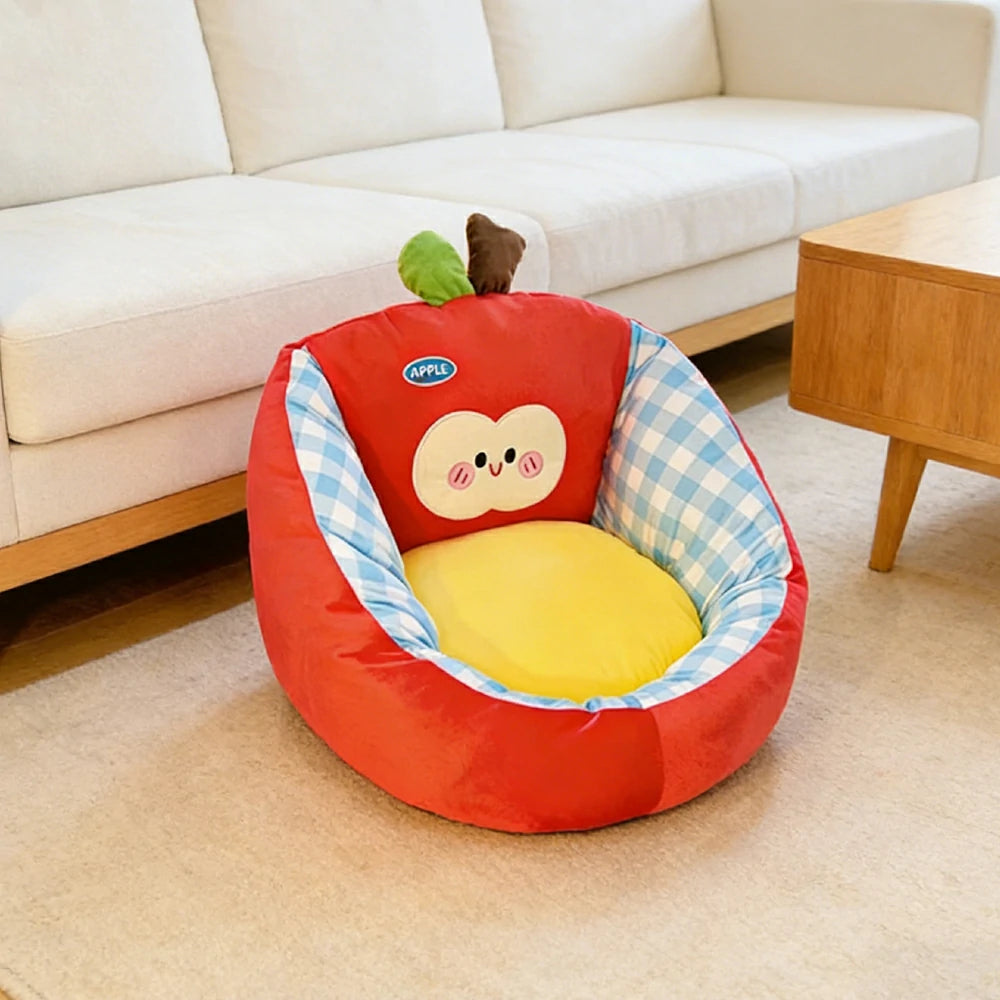 LIVARA 50/60cm Floor Seat Cushion, Wraparound Support Design, Plush Filled Core, Red Apple Pattern, Non-Slip Base