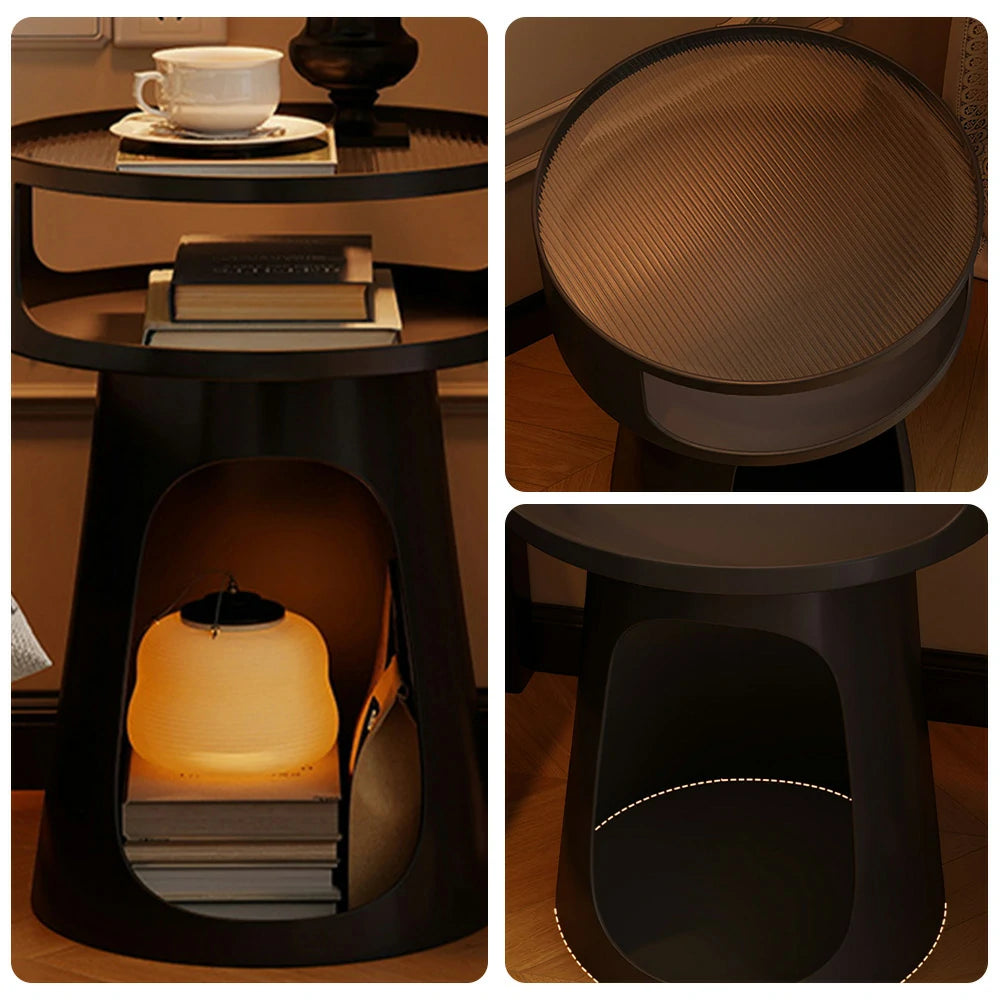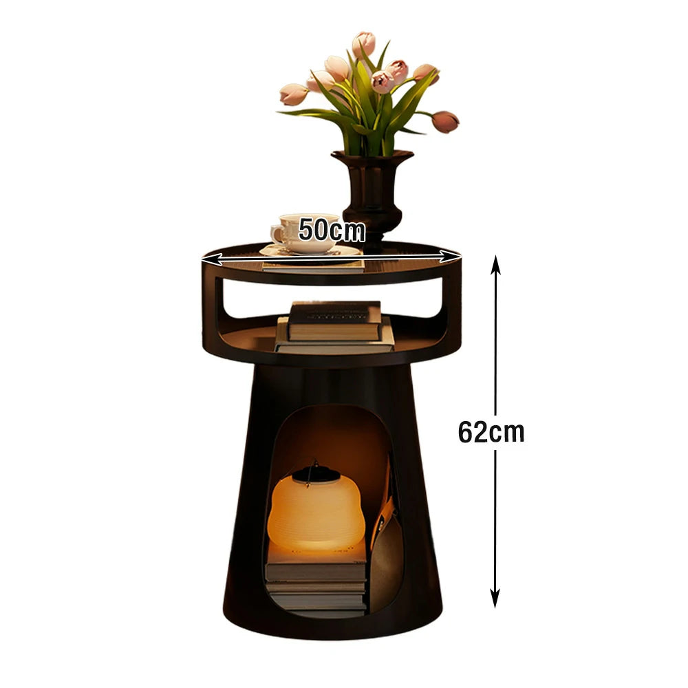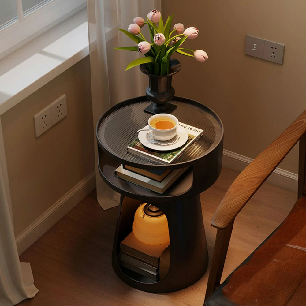 LIVARA 3-Tier Glass Side Table, Heavy-Duty Iron Frame, Raised Edges, Compact Storage, Anti-Noise Base - Black