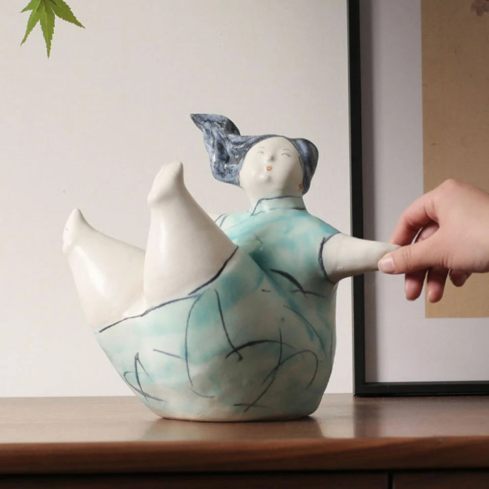 LIVARA Sculptural Ceramic Figurine - Expressive Dancing Form with Hand-Painted Line Art Finish, Artistic Statement Decor for Modern Interiors - Green