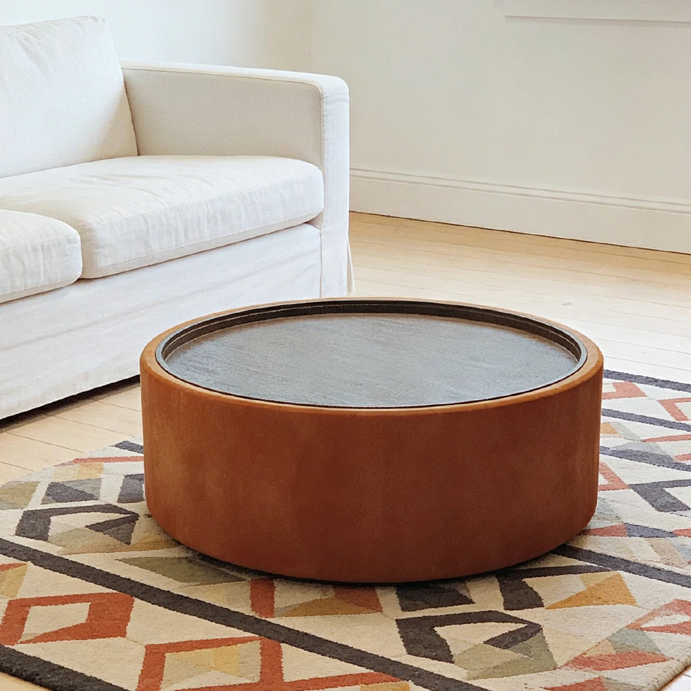 LIVARA Round Storage Coffee Table Hidden Storage Smooth Curved Design Modern Minimal Style - Orange