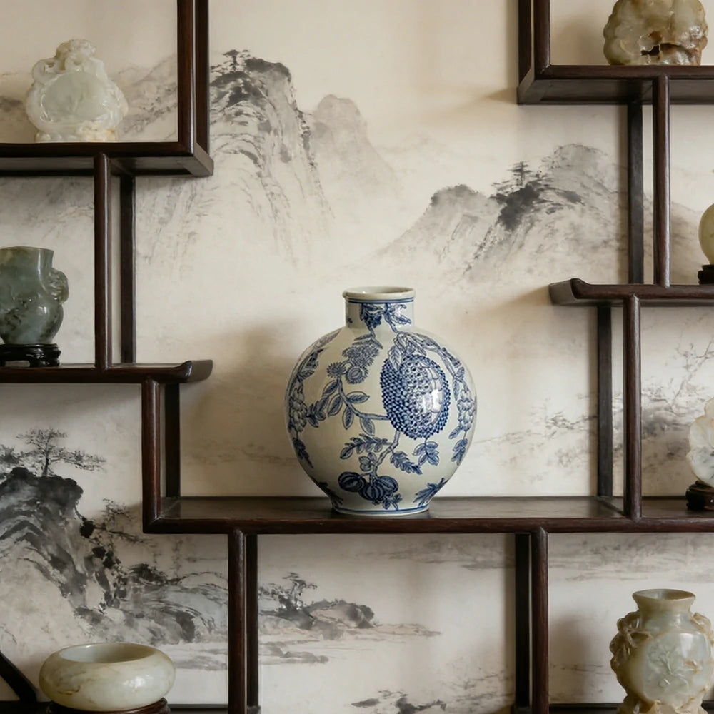 LIVARA Ceramic Vase Decor Display Eternal Pomegranate Design Matte Ceramic Handcrafted Stone Texture