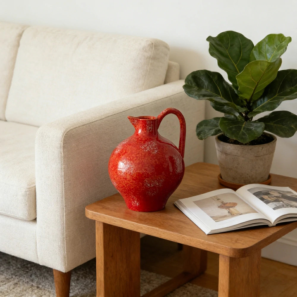 LIVARA Ceramic Vase Decor Display Matte Ceramic Red Gemstone Shape Handcrafted Artistic Design