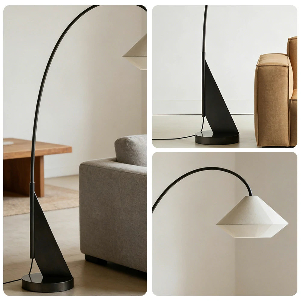 LIVARA Floor Lamp Soft Diffused Lighting Metal Frame Fabric Shade Curved Design with Geometric Base