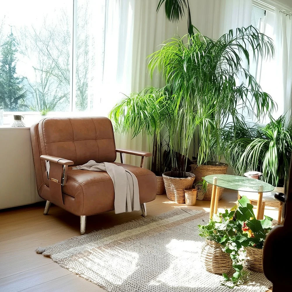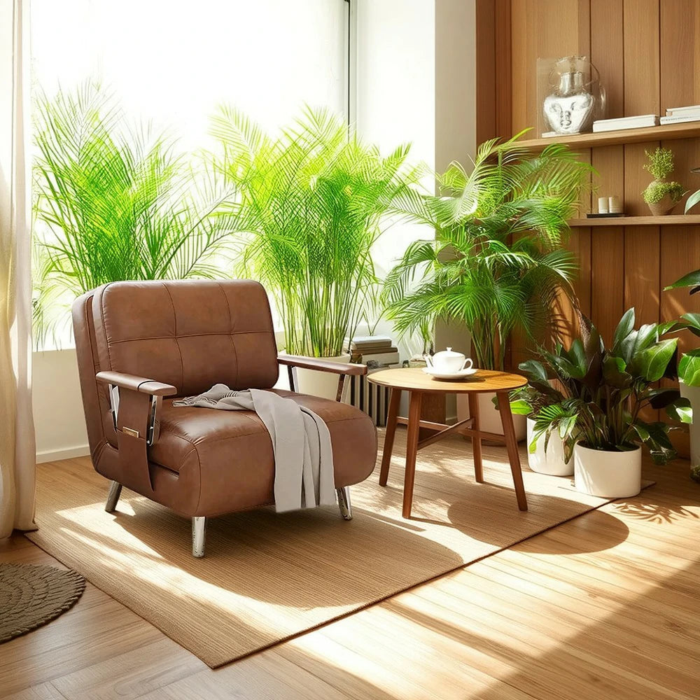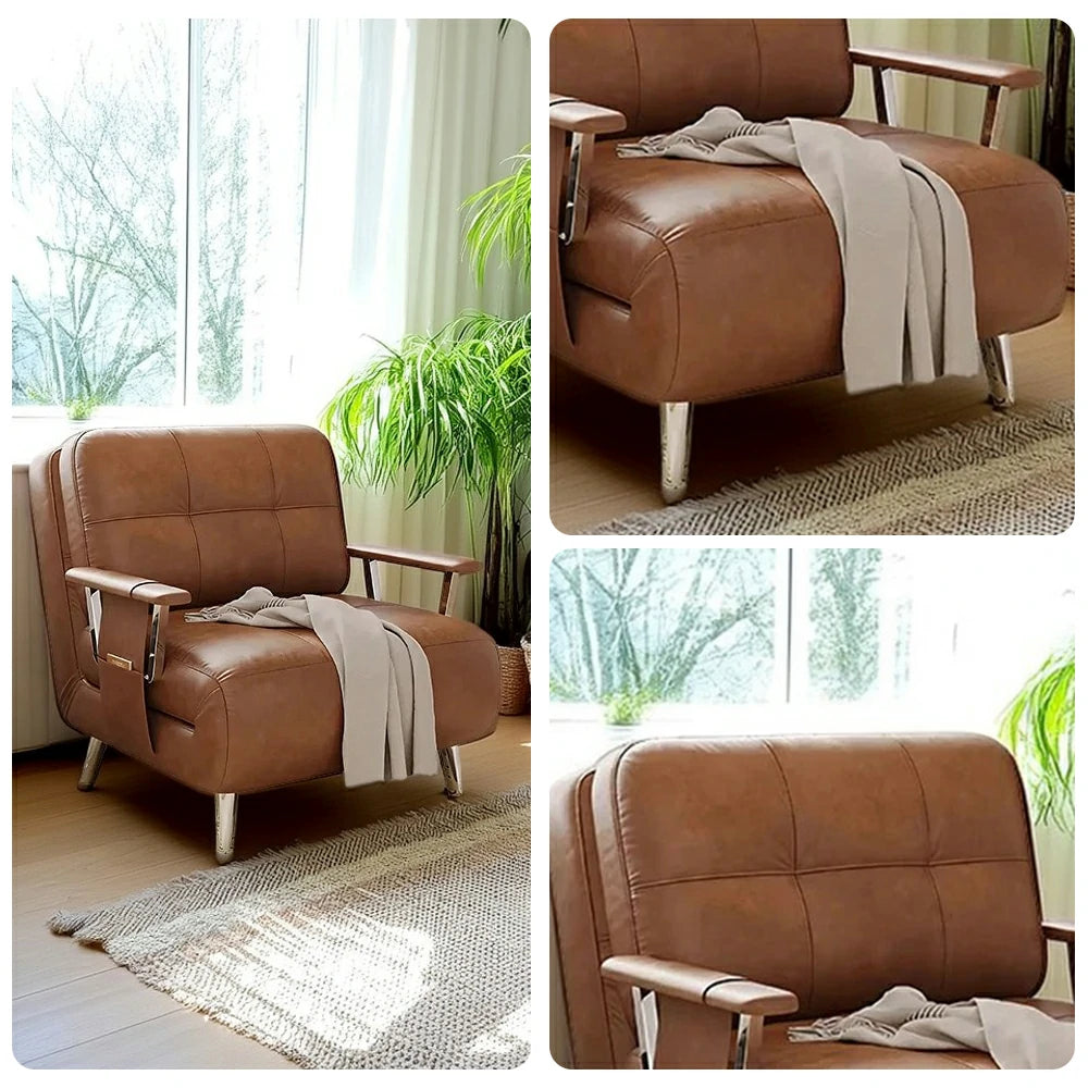 LIVARA 94/114cm Sofa Bed, 2-in-1 Design, High-Density Foam, Cat-Scratch Leather, Adjustable Angles, Durable & Waterproof - Brown