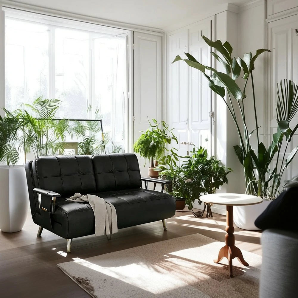 LIVARA 134/164cm Sofa Bed, 2-in-1 Design, High-Density Foam, Cat-Scratch Leather, Adjustable Angles, Durable & Waterproof - Black
