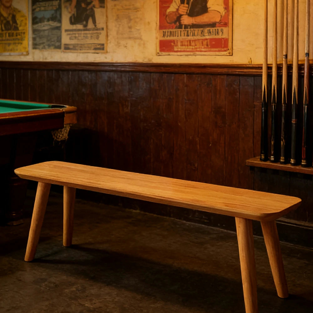 LIVARA 120/140cm Solid Wood Bench Seating - Tapered Round Legs Design with 4.5cm Thick Top, Heavy-Duty Dining & Pool Table Bench for Home & Game Rooms - Natural Wood
