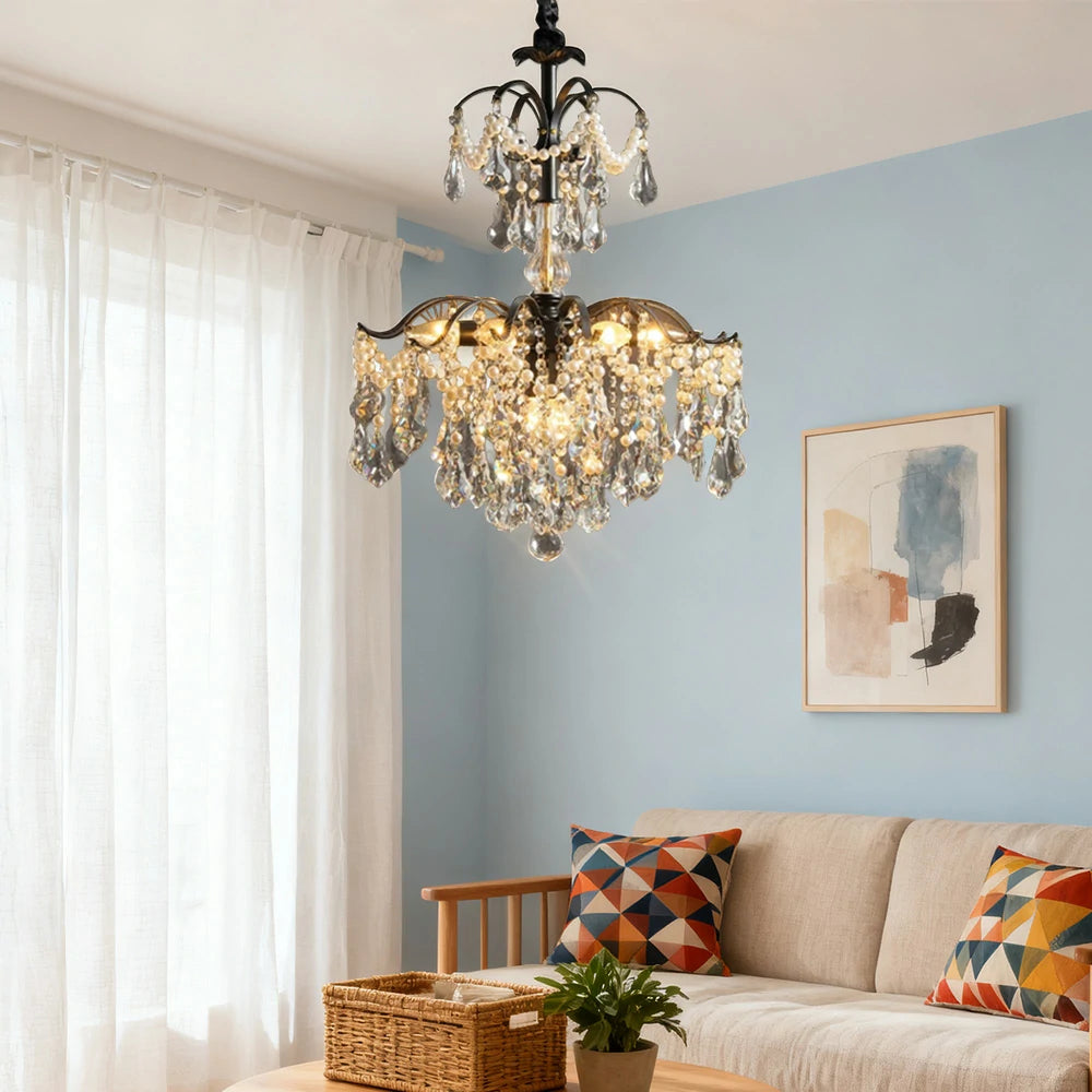 LIVARA Crystal Pendant Light 50/65/80cm High-Quality Iron Frame, Adjustable Height, Crystal Beads, Elegant Light Diffusion