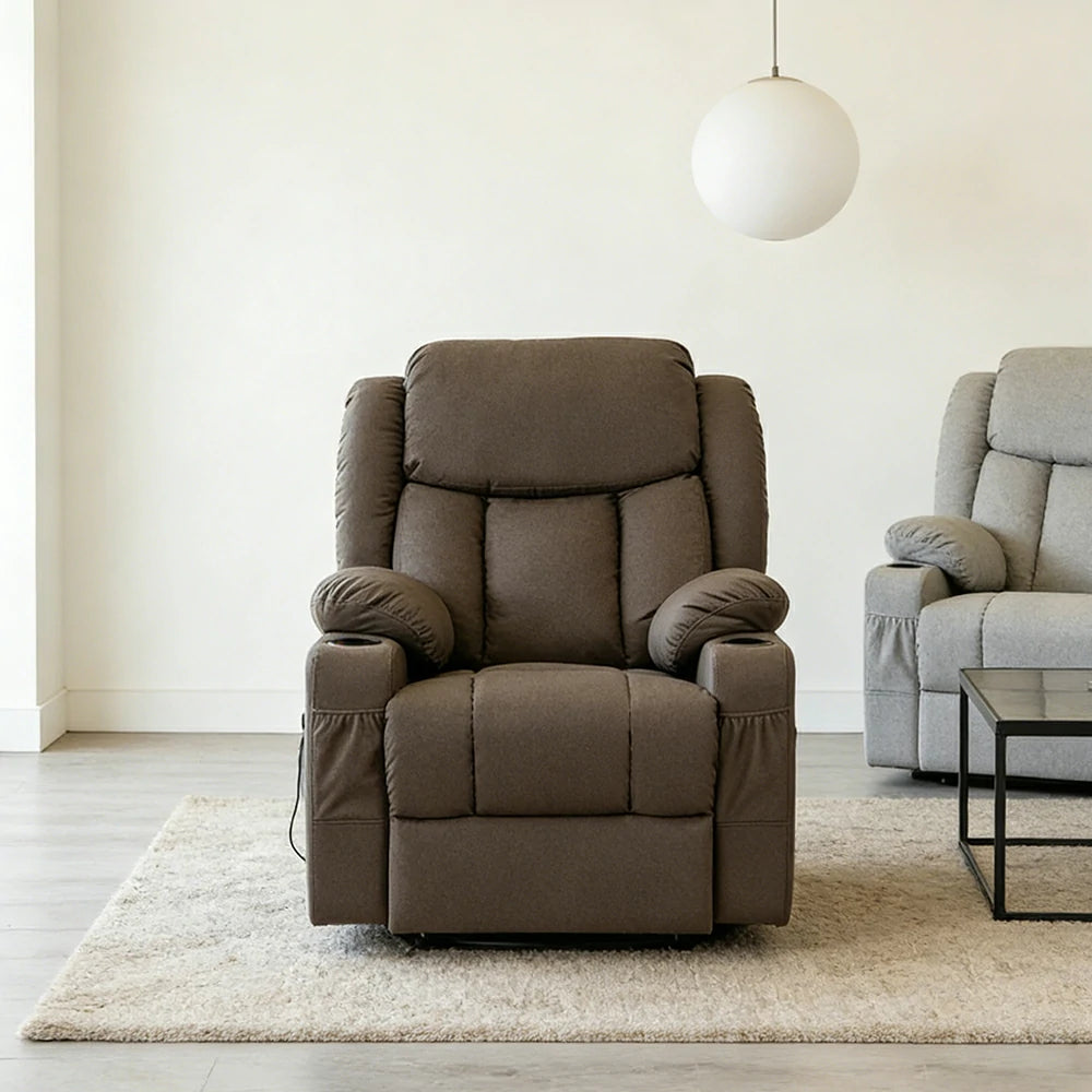LIVARA Electric Assist Sofa, Smooth Lift-Up Support for Easy Standing, Durable Upholstery, Steel Frame, Wide Footrest Design - Coffee