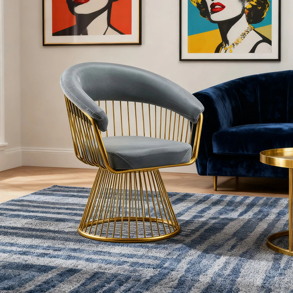LIVARA Swivel Chair Half-Round Backrest High-Elastic Foam Filling Thickened Tempered Glass Base Spacious Seat - Grey