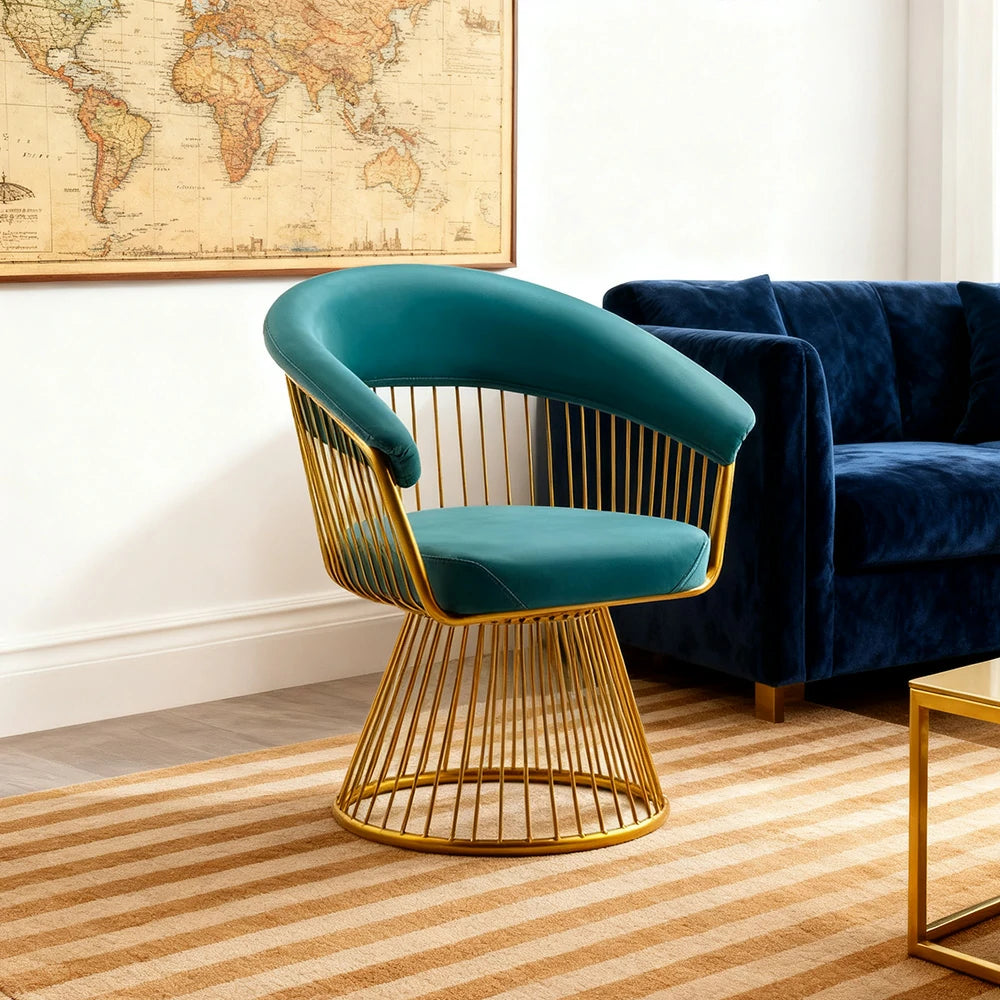 LIVARA Swivel Chair Half-Round Backrest High-Elastic Foam Filling Thickened Tempered Glass Base Spacious Seat - Green