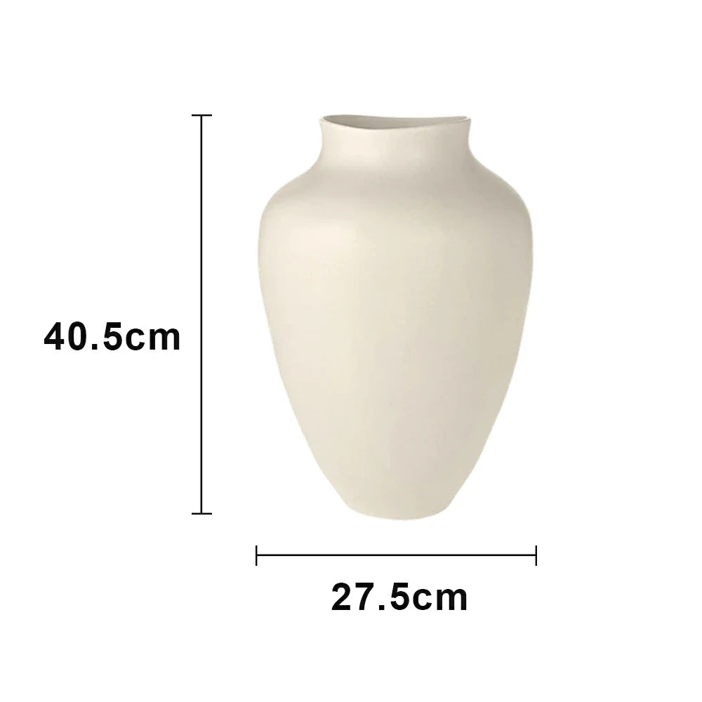 LIVARA Ceramic Vase Ornament Artistic Display Matte Ceramic Handcrafted Stone-Texture Design - White