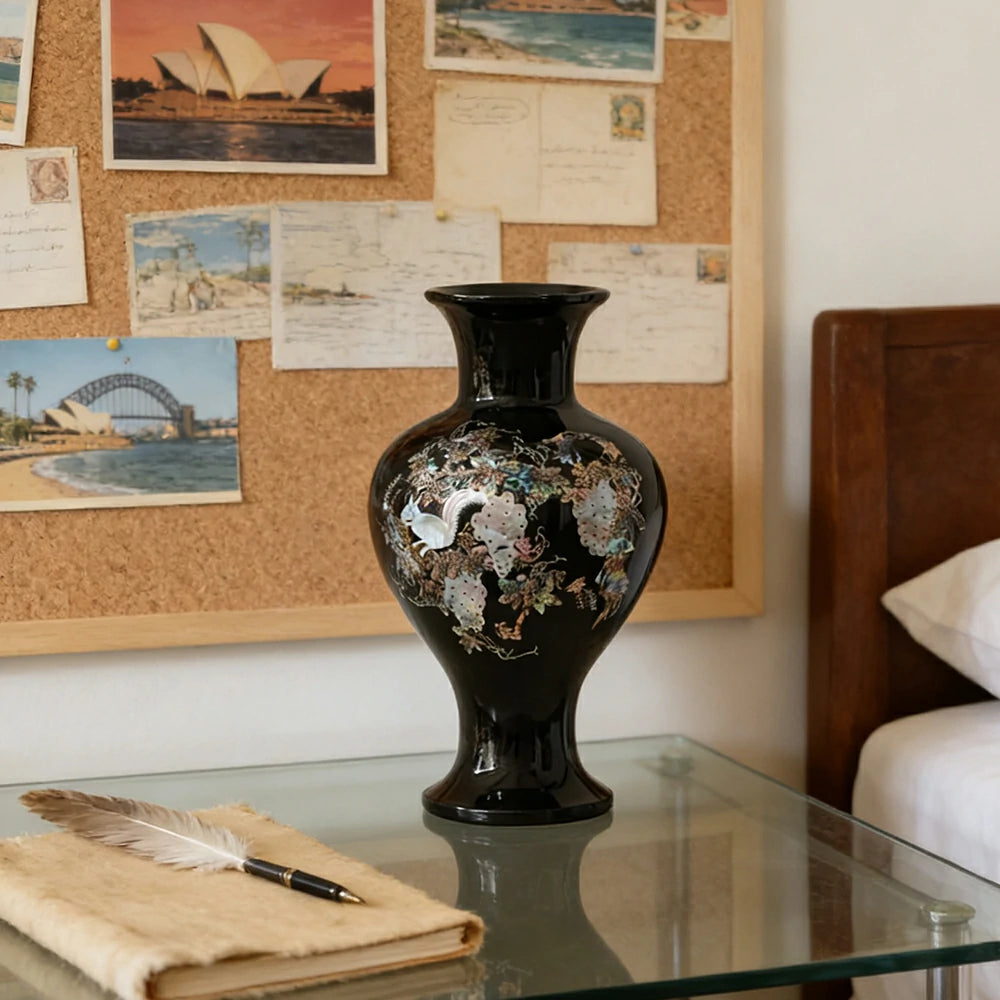 LIVARA Ceramic Vase Ornament Squirrel & Grape Motif Water-Propagation Ready Artistic Display Matte Ceramic Handcrafted Stone-Texture Design
