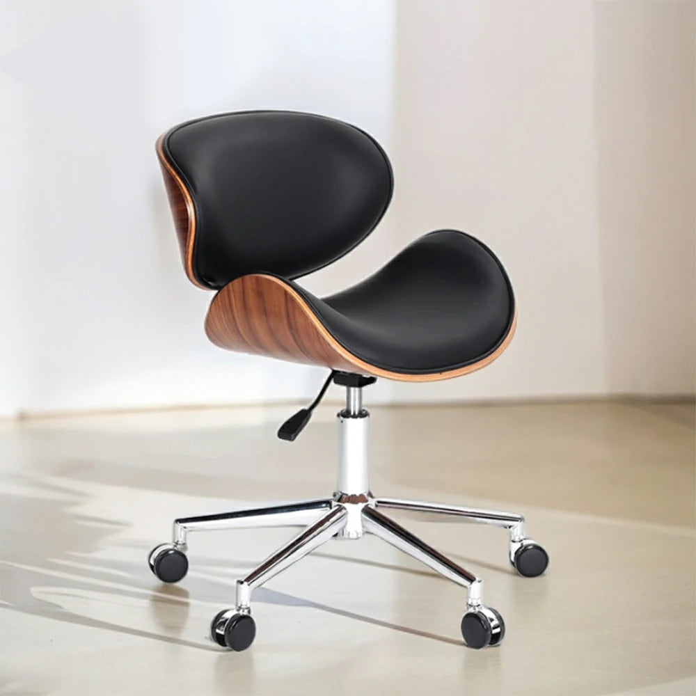 LIVARA Accent Office Chair – Premium Faux Leather Upholstery, Ergonomic Curved Backrest, Plywood Shell Design, High-Density Cushion, 360° Swivel Base with Smooth Wheels - Black