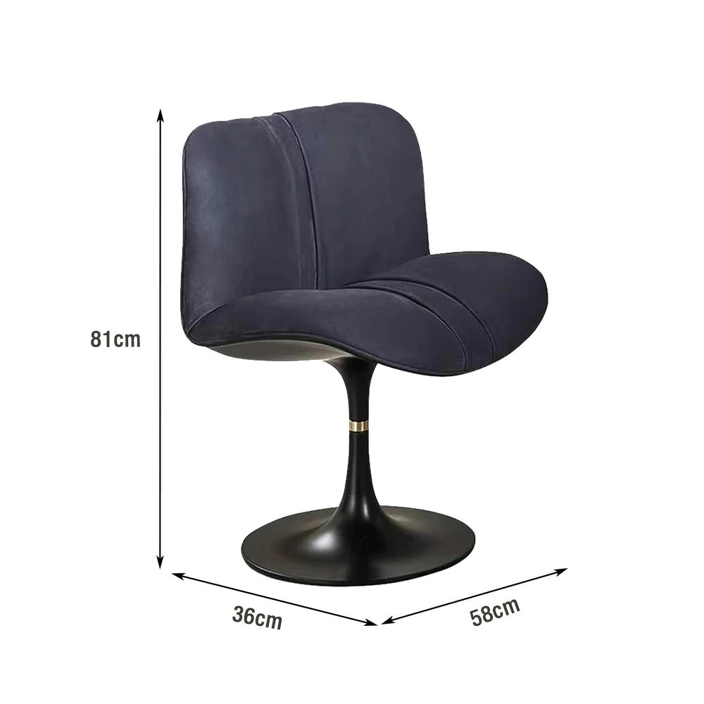 LIVARA Accent Swivel Chair – Premium Leather Upholstery, Ergonomic Curved Backrest, High-Density Cushion, Stable Steel Base, Modern Dining & Computer Chair - Blue
