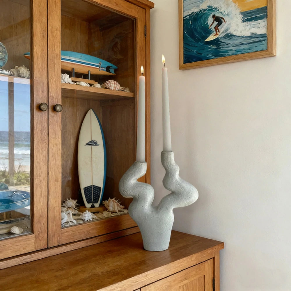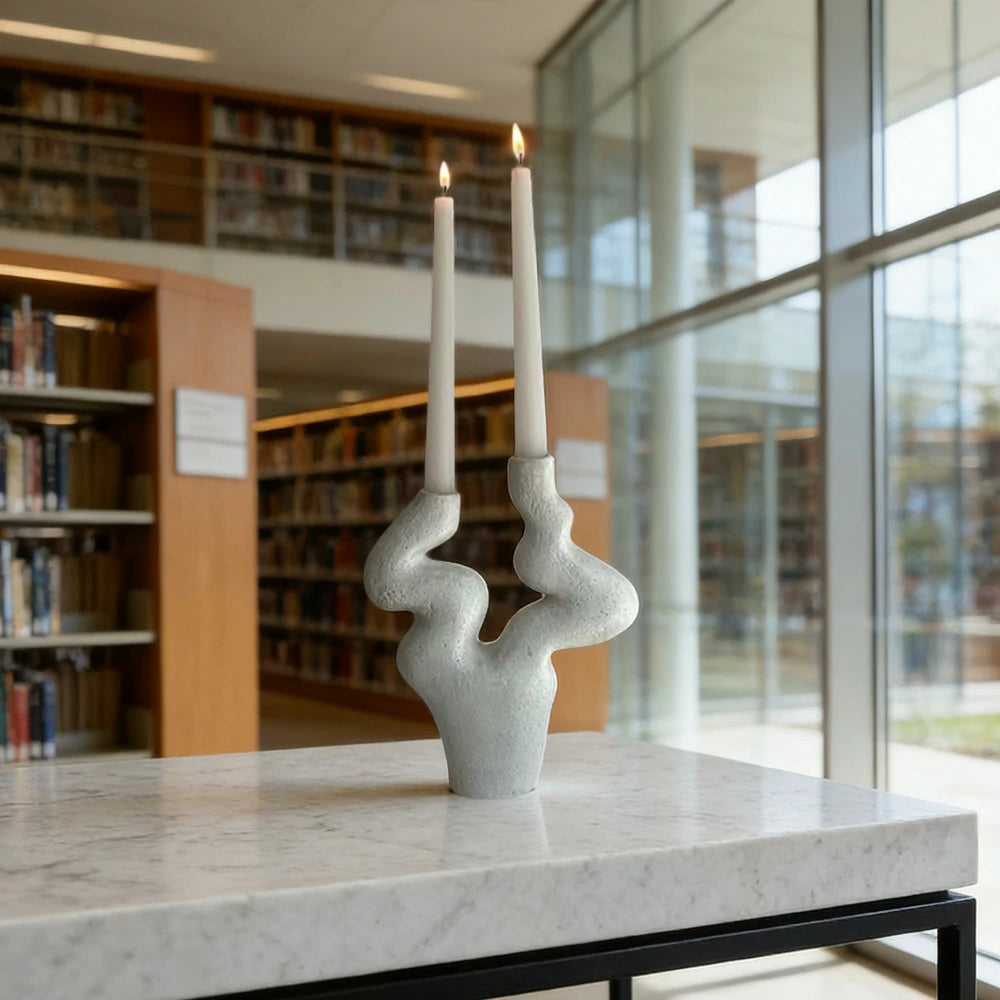 LIVARA Branch Form Ceramic Candle Holder Sculptural Handcrafted Stone-Like Matte Texture Artistic Accent for Modern Interiors - White