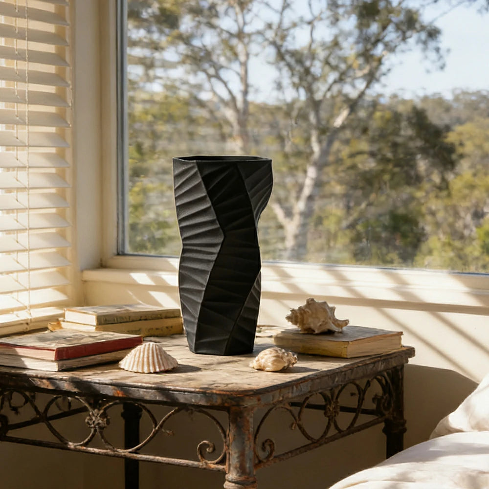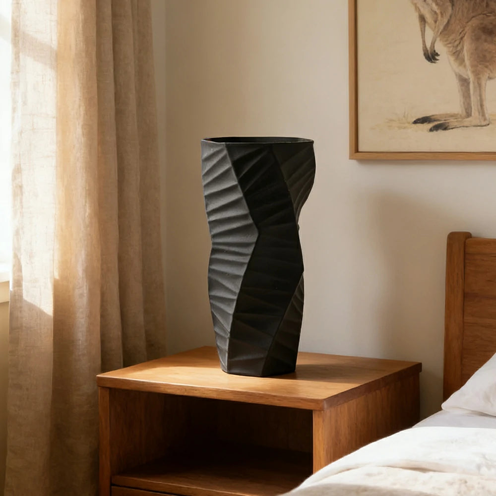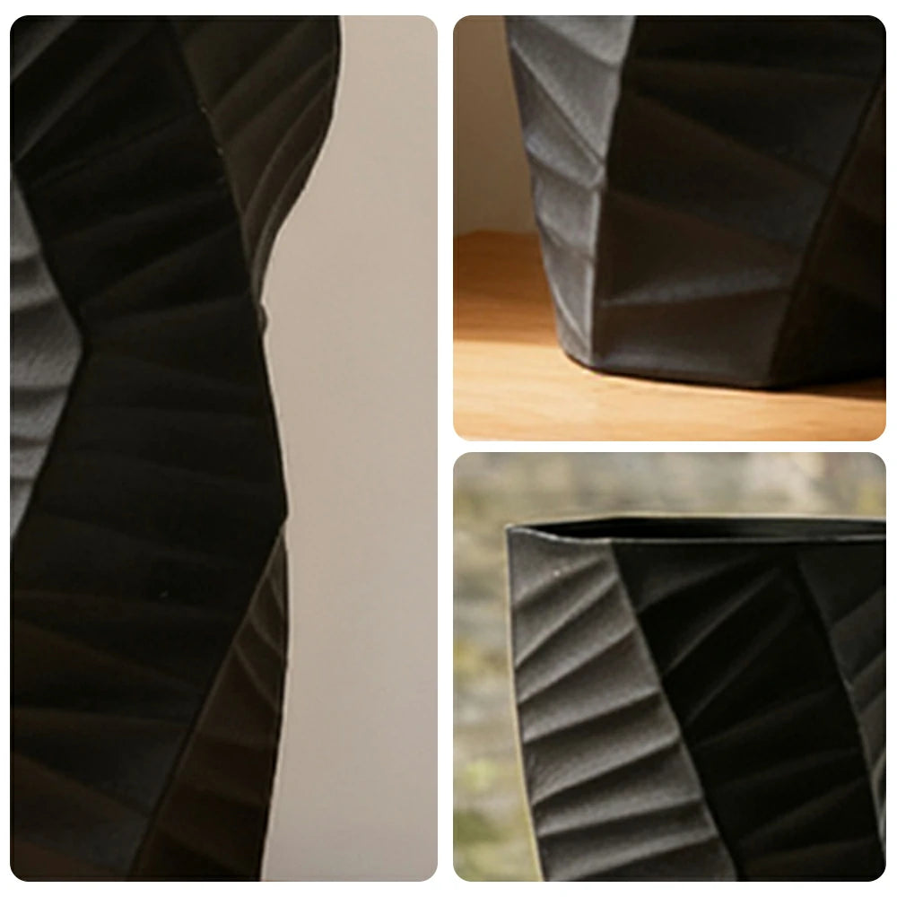 LIVARA Ceramic Vase Ornament Contemporary Minimal Design Artistic Home Display Matte Ceramic Handcrafted Stone-Texture Design - Black