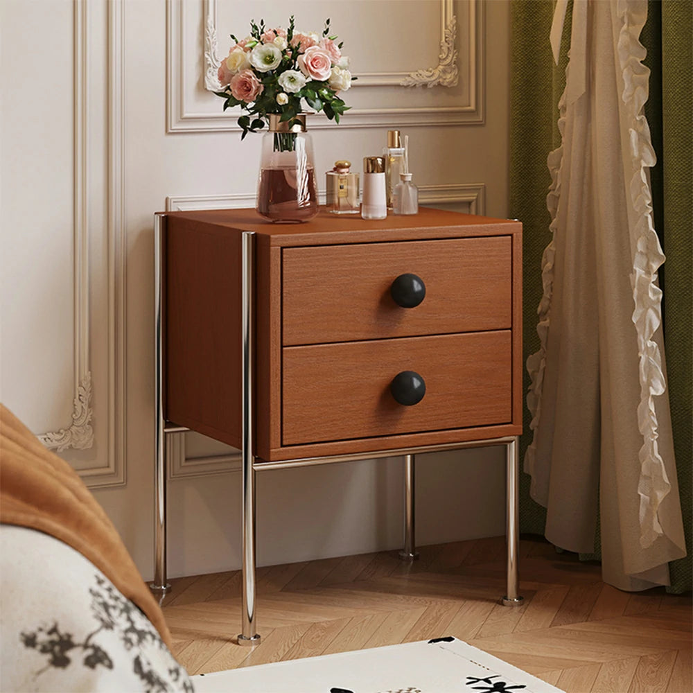 LIVARA 1133 Bedside Cabinet, Open Tabletop, Solid Ash Wood Grain, Spherical Handles, Tall Stainless Steel Legs, 17cm Bottom Clearance - Wood