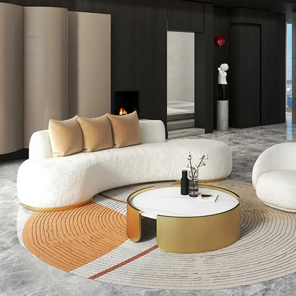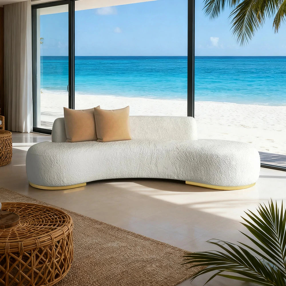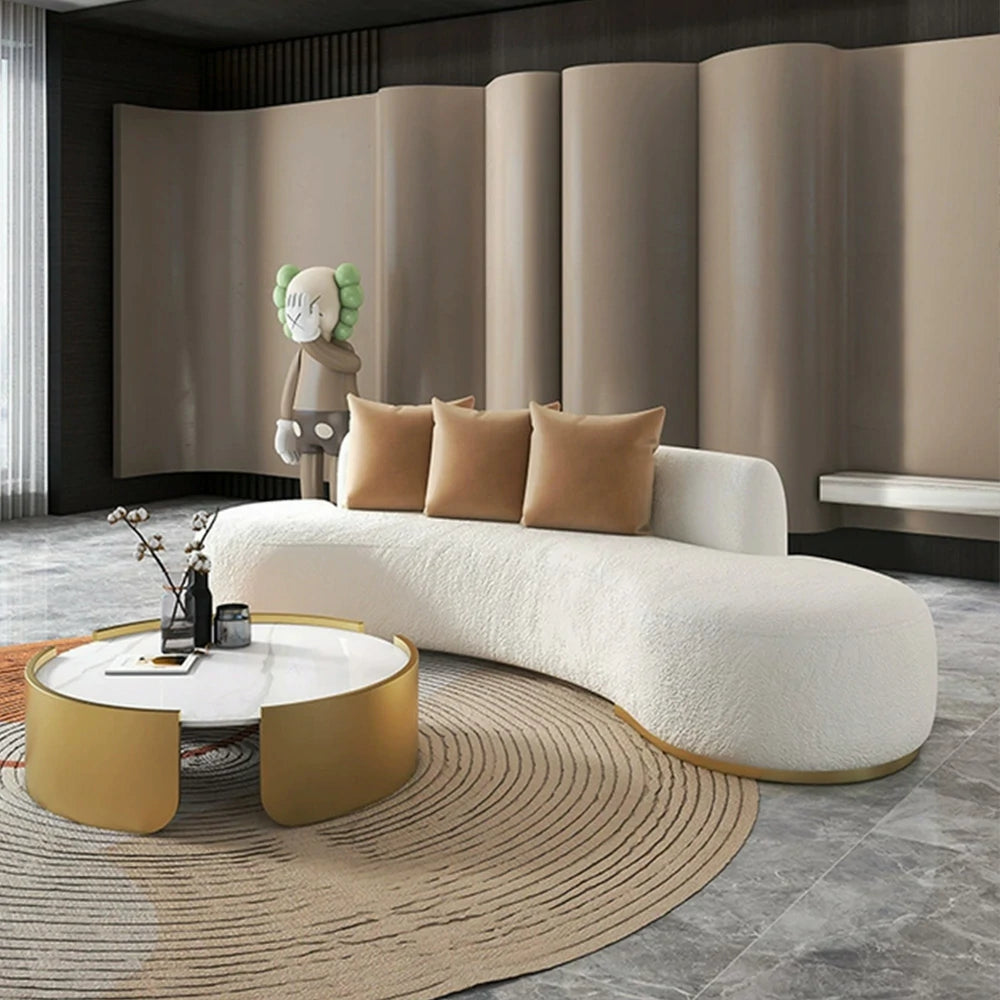 LIVARA 170/200/230cm Multi-Seater Sofa Lamb Fleece Fabric Upholstered, Breathable, Ergonomic Design, Solid Wood Frame, High-Density Sponge - White