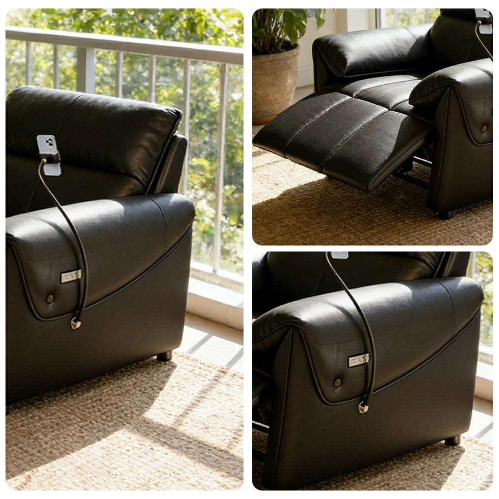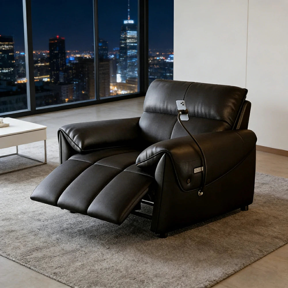 LIVARA 117cm Single Electric Recliner Chair Genuine Leather Zero-Wall Comfort Design for Living Room - Black