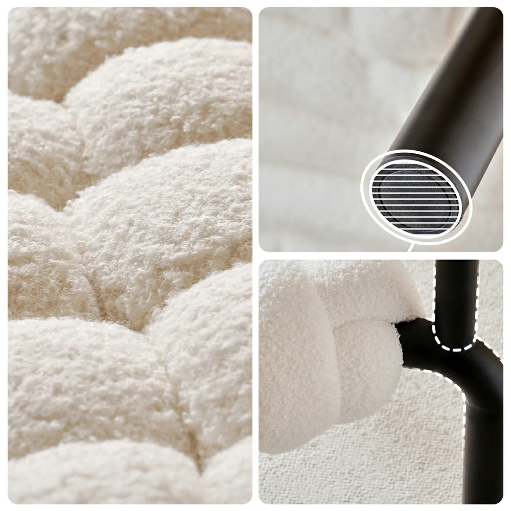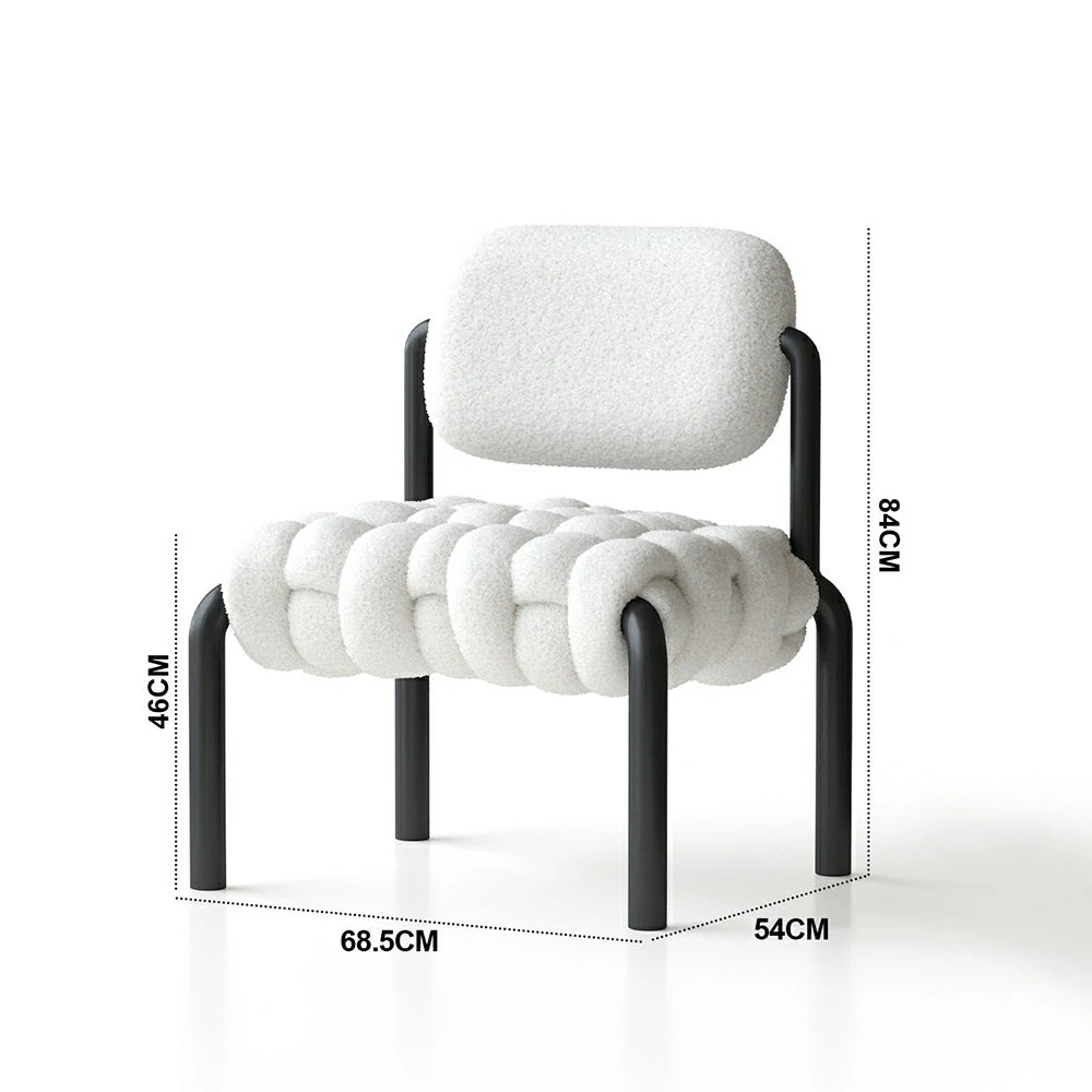LIVARA Nordic Shearling Accent Chair - Handwoven Cushion, Teddy Fleece Upholstery, Steel Frame, Modern Designer Lounge Seat - White