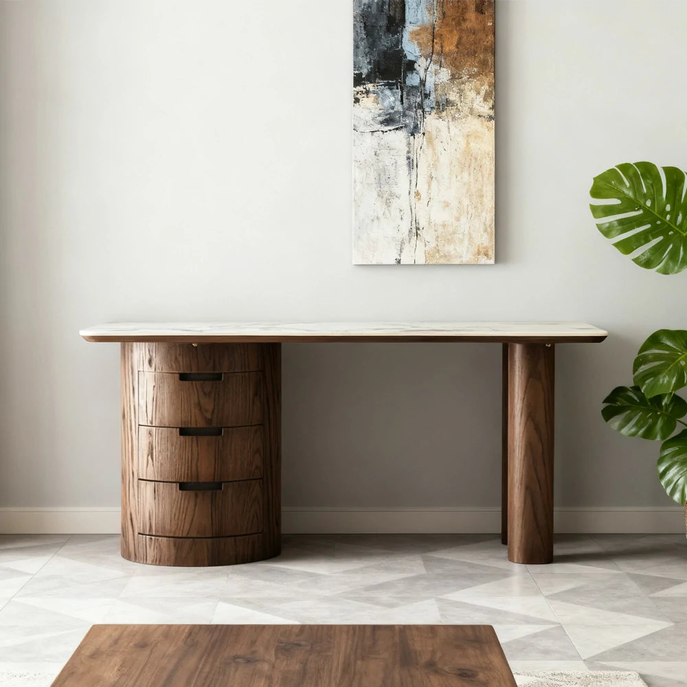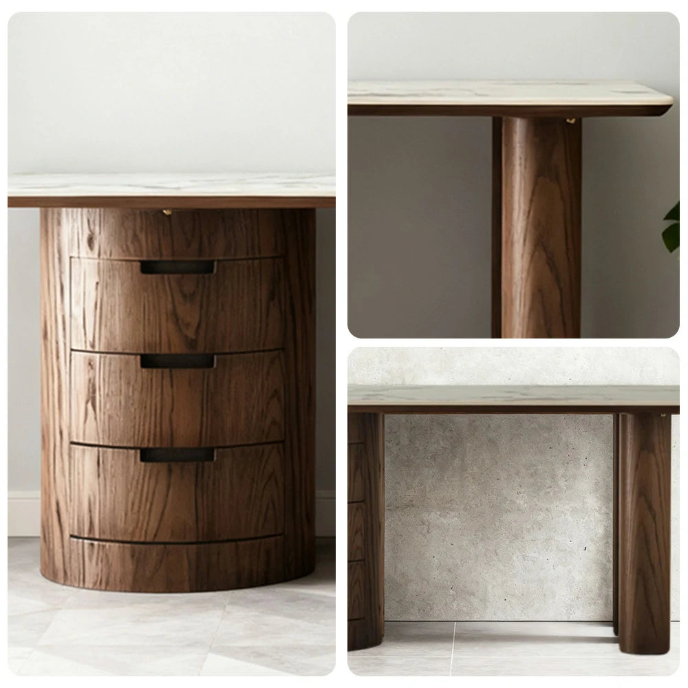 LUXORA 140/160cm Modern Minimalist Desk Sintered Stone Top Wooden Legs Hidden Storage Space Ideal for Home Office - Brown