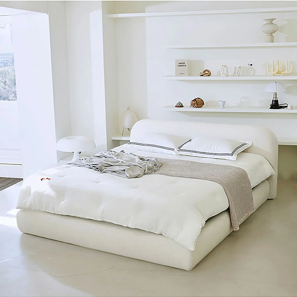 LUXORA Low Headboard Upholstered Bed Frame 150/180cm, Solid Wood & E0 Eco Materials, High-Resilience Sponge - Beige