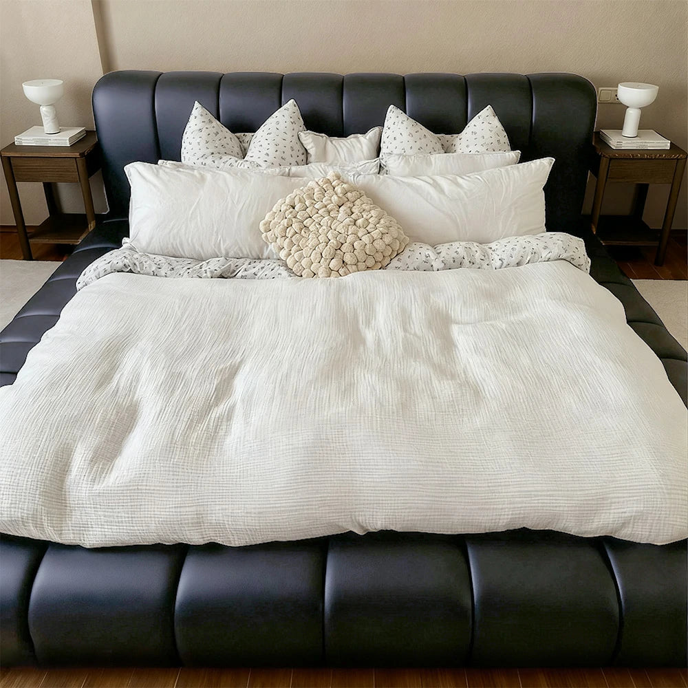 LUXORA Upholstered Bed Frame 150/180cm, Cotton-Linen Blend, Water-Resistant, High-Density Sponge Headboard, Reinforced Steel Frame - Black