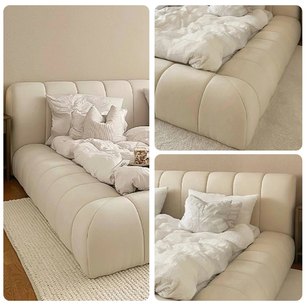 LUXORA Upholstered Bed Frame 150/180cm, Cotton-Linen Blend, Water-Resistant, High-Density Sponge Headboard, Reinforced Steel Frame - White