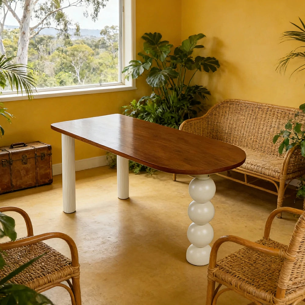 LUXORA 140/160cm Single Solid Wood Dining Table - French Cream Style, Semi-Oval Edge Design, Space-Saving Table for Dining & Work Spaces - Walnut & Cream