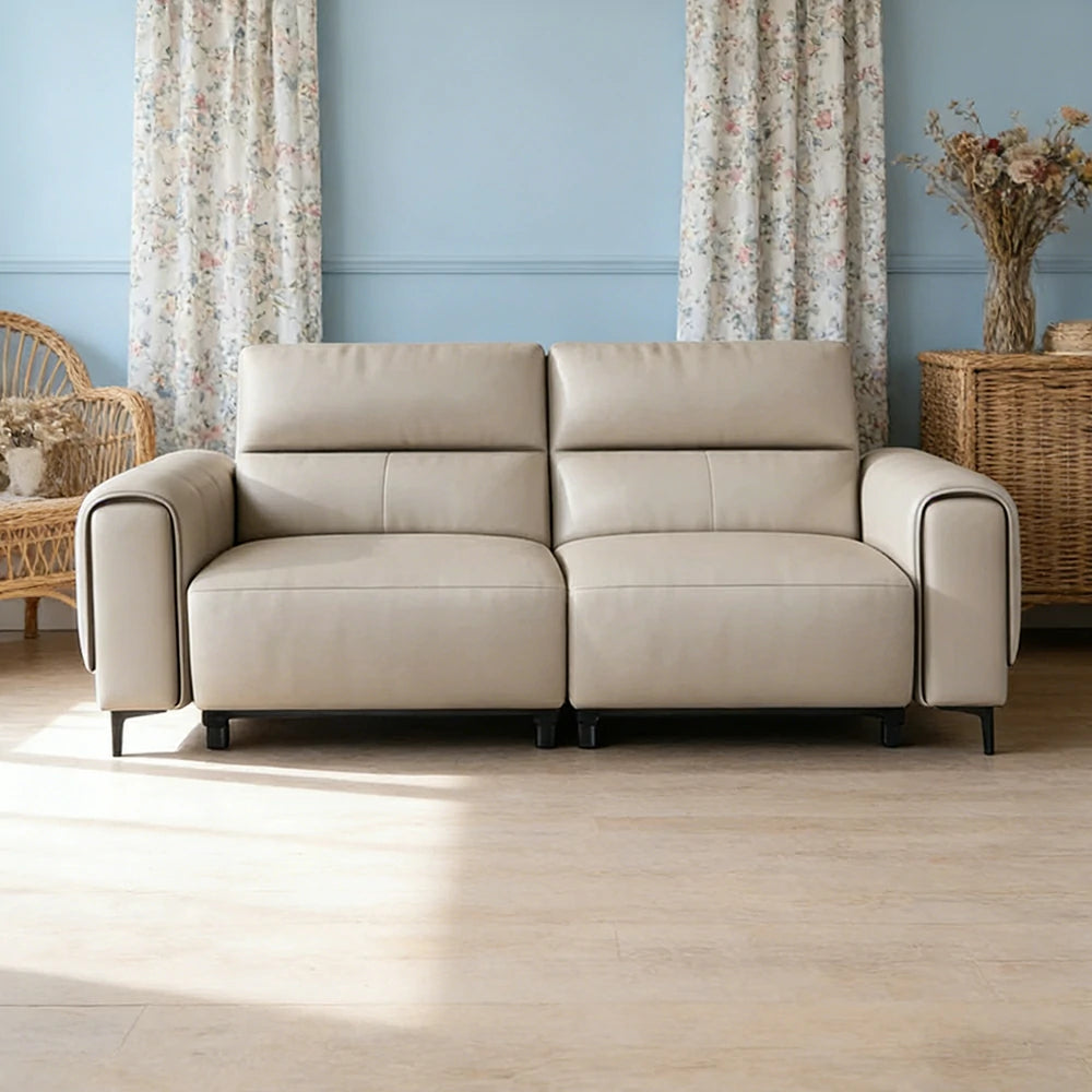 LUXORA 2-Seater Electric Recliner Sofa 170/210cm Wide-Angle Adjustment Top-Grain Leather Dual-Layer Comfort Cushion - Beige