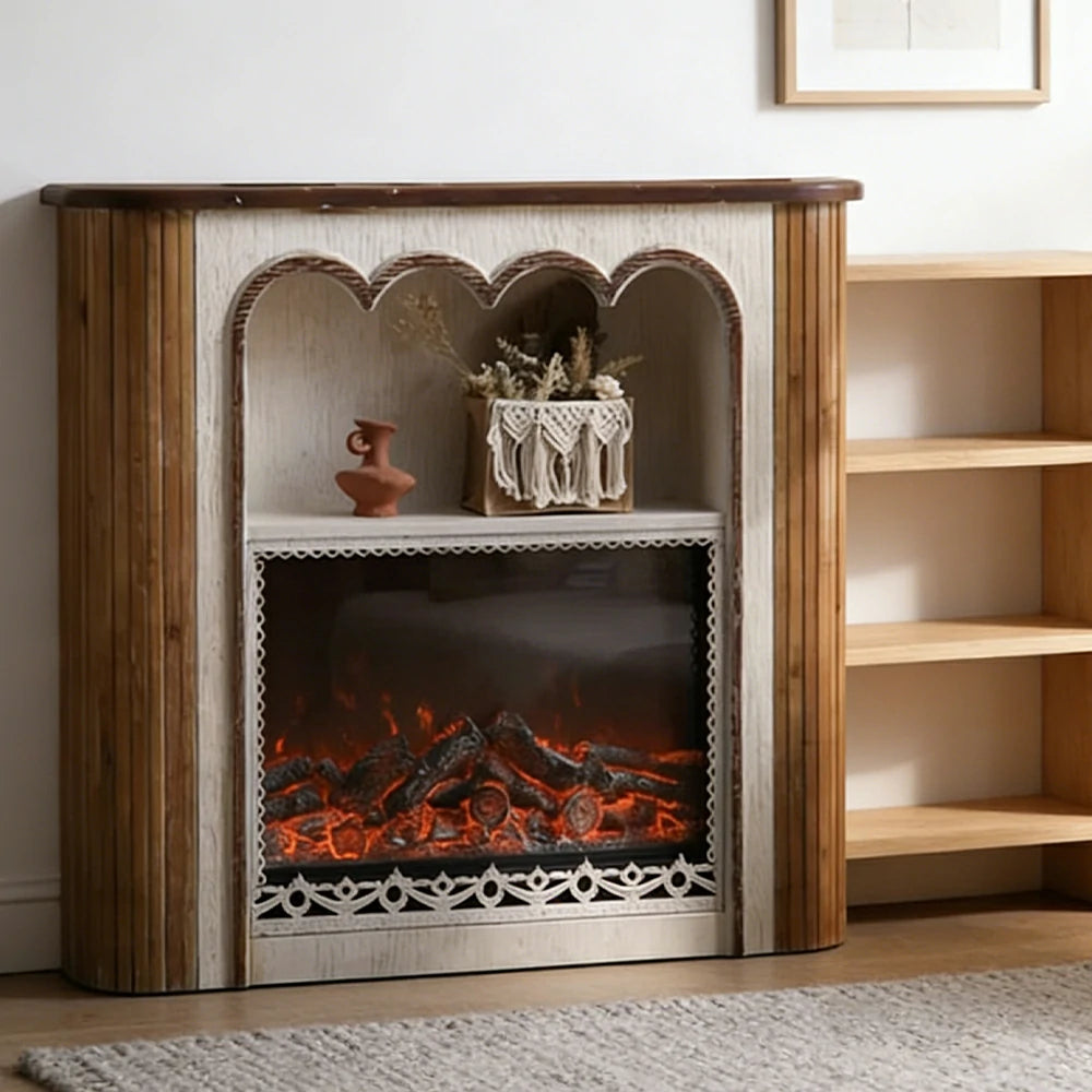 LUXORA Electric Fireplace Mantel Heater Vintage Carved Fireplace Surround Spruce Wood Iron Frame 750W-1500W Heater