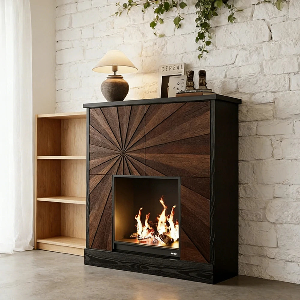 LUXORA Electric Fireplace Storage Cabinet 3D Flame Heater Tempered Glass Wood Grain Console with Storage