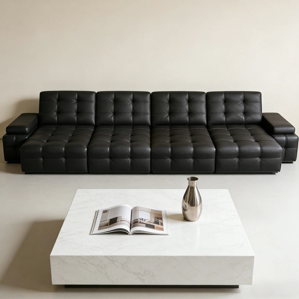 LUXORA 3.35/4.55m Quad Electric Recliner Sofa Zero-Wall Design Multi-Mode Adjustable Backrest Ergonomic Comfort Top-Grain Leather - Black