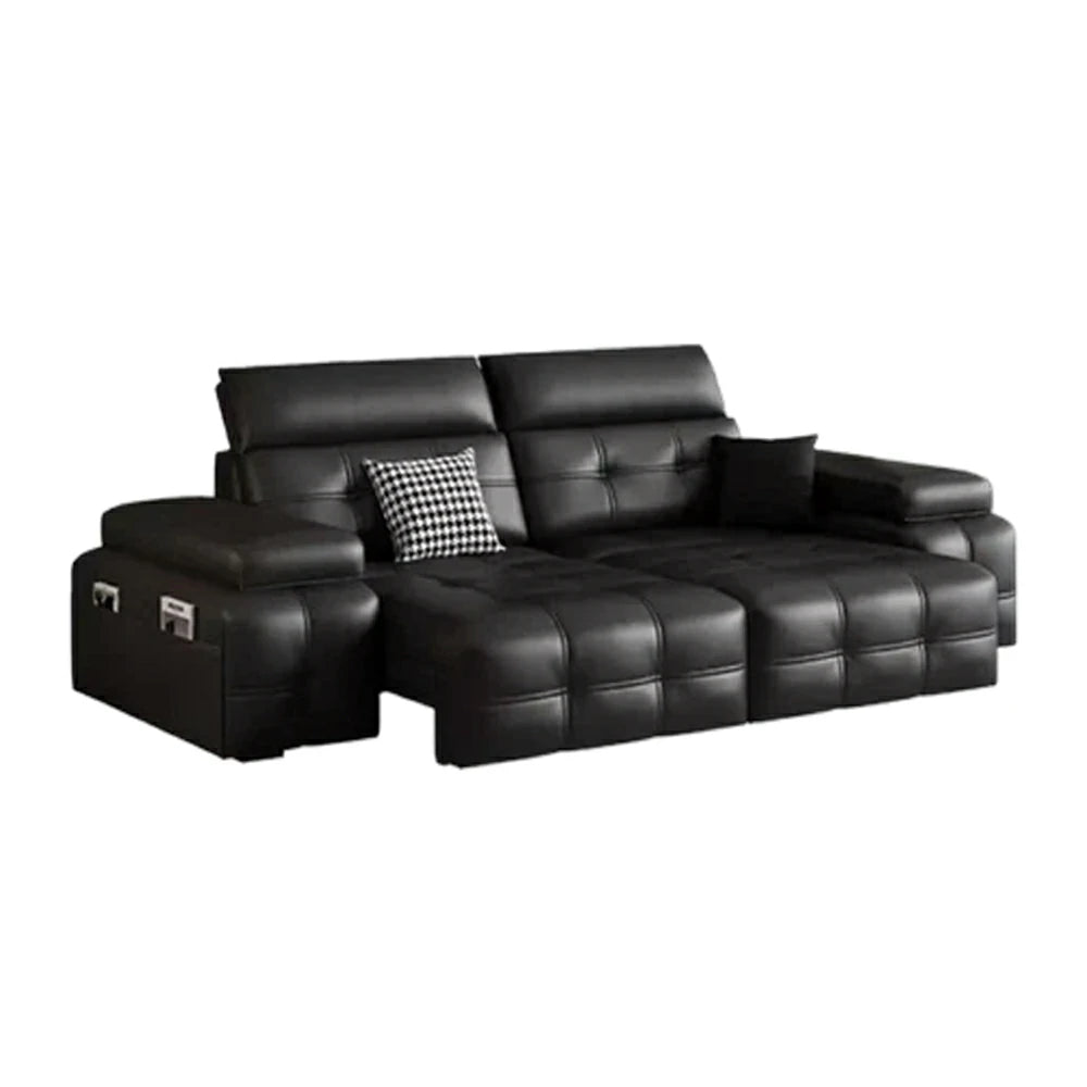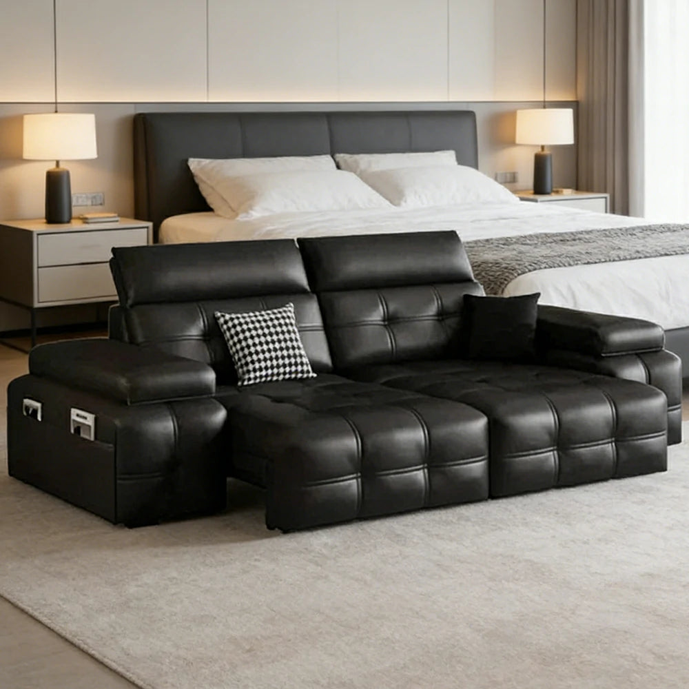 LUXORA 205/265cm 2-Seater Dual Electric Recliner Sofa Zero-Wall Design Multi-Mode Adjustable Backrest Ergonomic Comfort Top-Grain Leather - Black