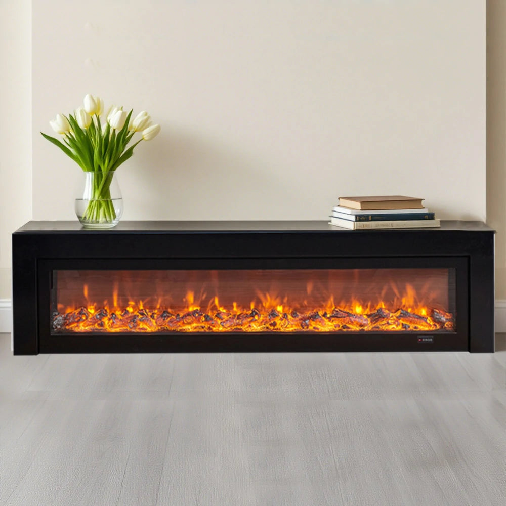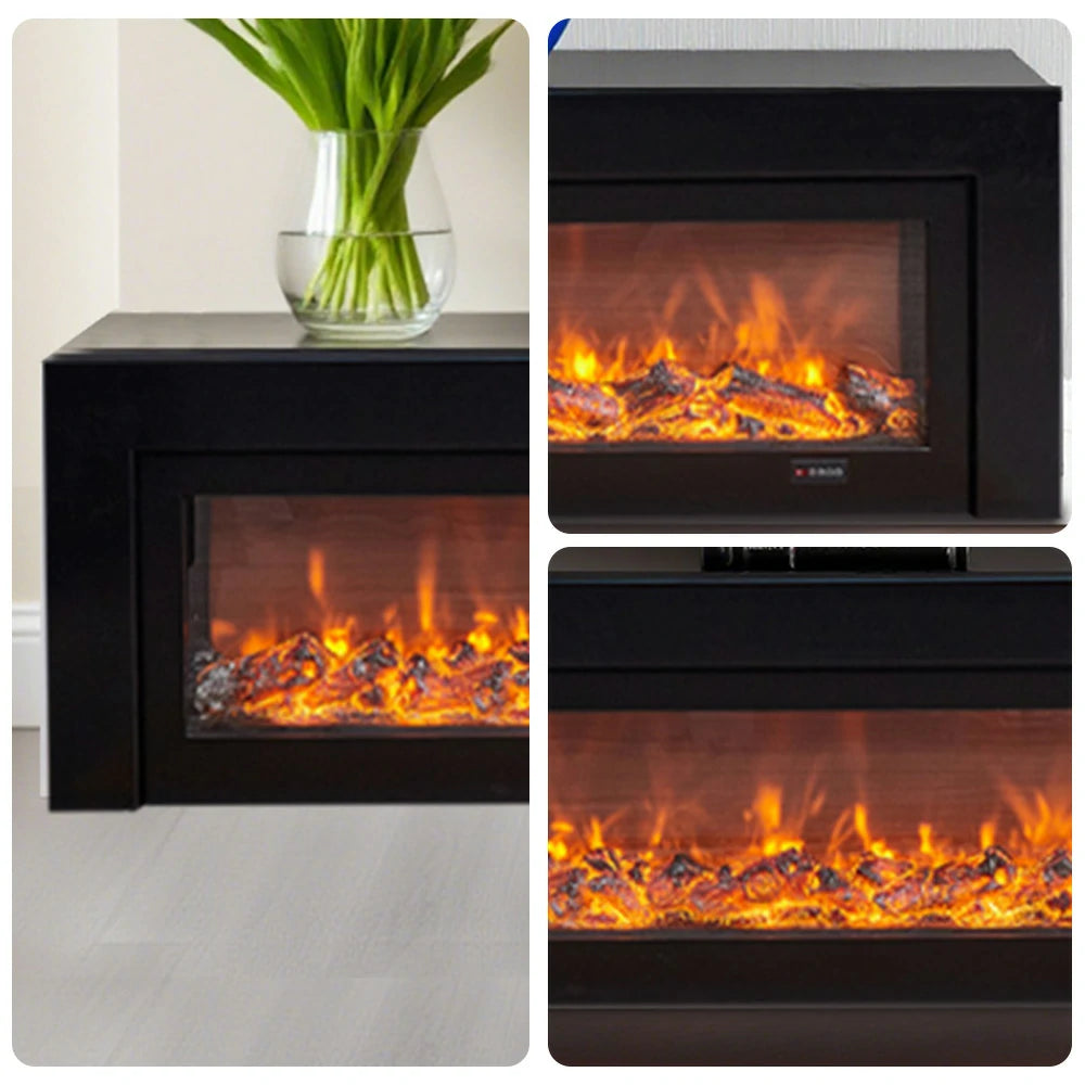 LIVARA 711 Electric Fireplace TV Cabinet - White Solid Wood Frame, 3D Flame Effect, Dual Core Options 12W/750–1500W, 180/200cm - Black