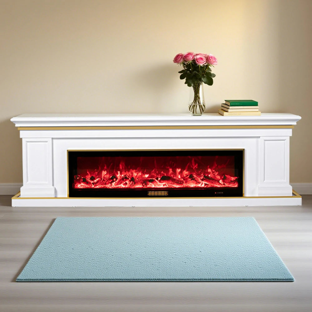 LIVARA 721 Electric Fireplace TV Cabinet – 180cm White Solid Wood Frame, 3D Flame Effect, Remote Control, Dual Core Options 12W/750–1500W - White